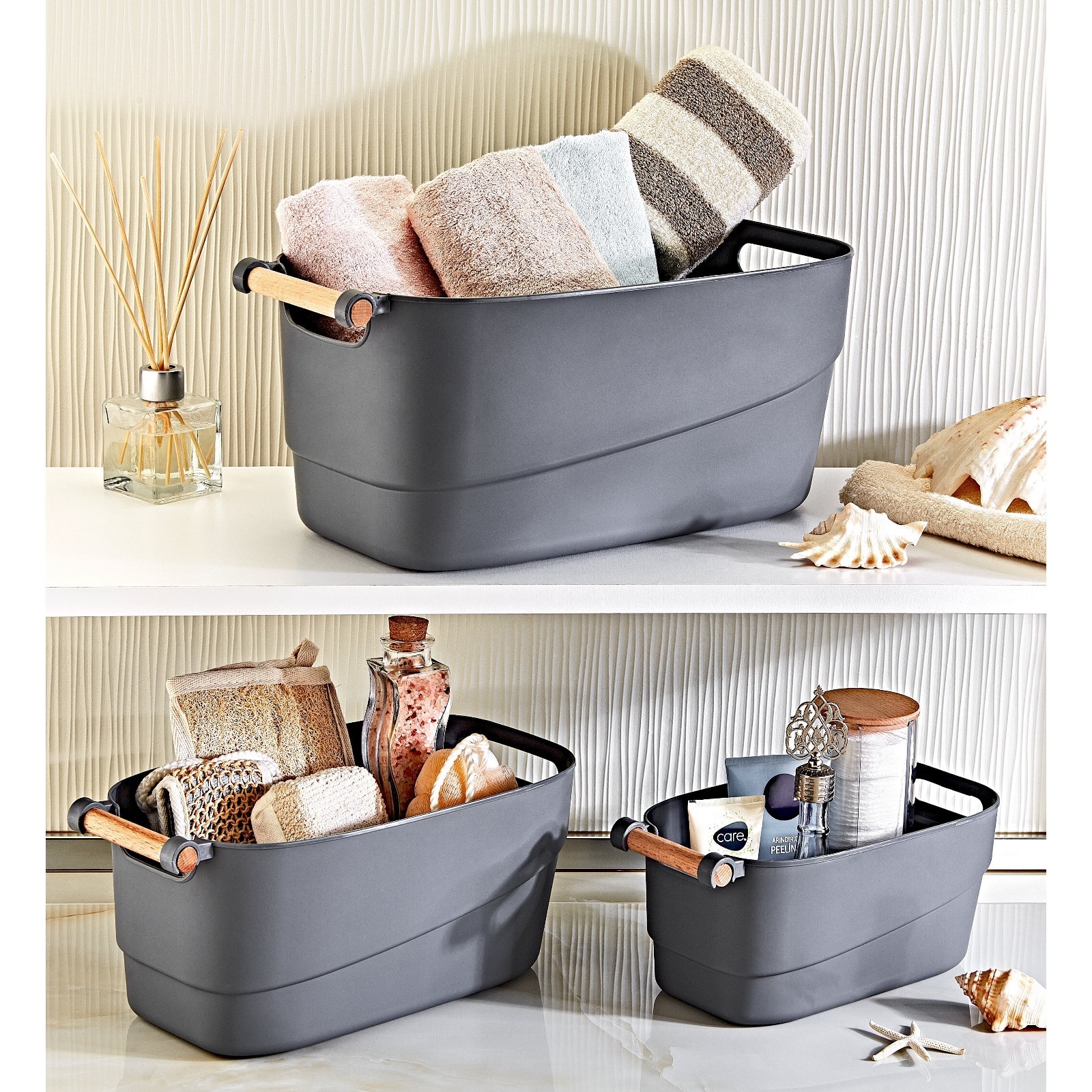 Прямоугольная форма корзины лишена острых углов, что делает ее безопасной и удобной в использовании. Корзина оснащена стильной ручкой для комфортного перемещения с одной стороны и ручкой-прорезью с другой стороны, обеспечивая удобство в транспортировке и переноске.