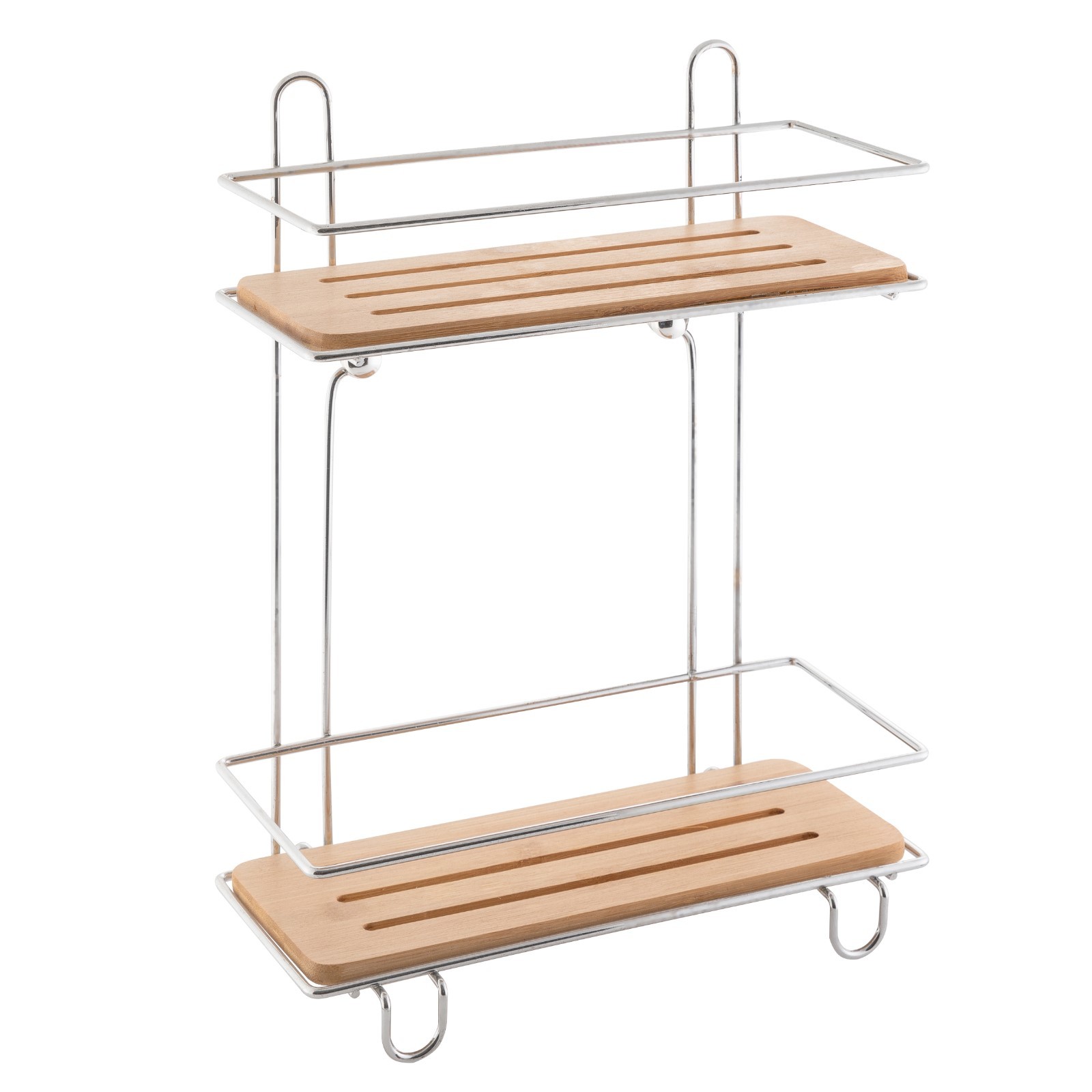 Полка Axentia Bonja 2-х ярусная, прямая, хромированная с бамбуком, 26,5х13х34 см