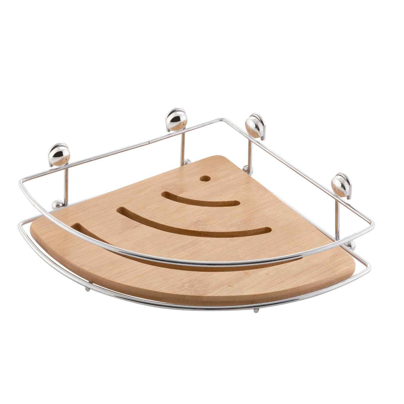 Полка axentia bonja одноярусная, угловая, хромированная с бамбуком, 20х8,5х20 см.