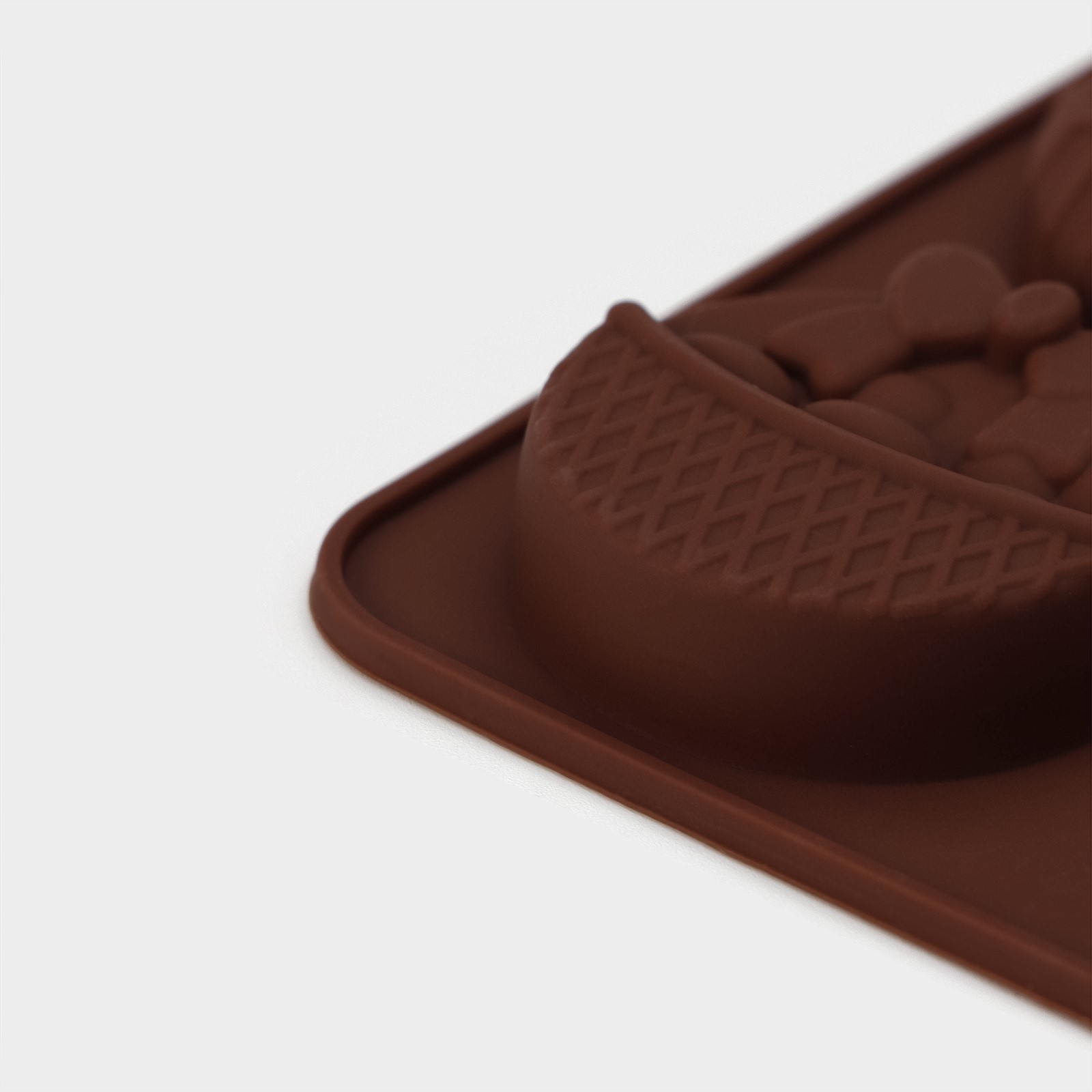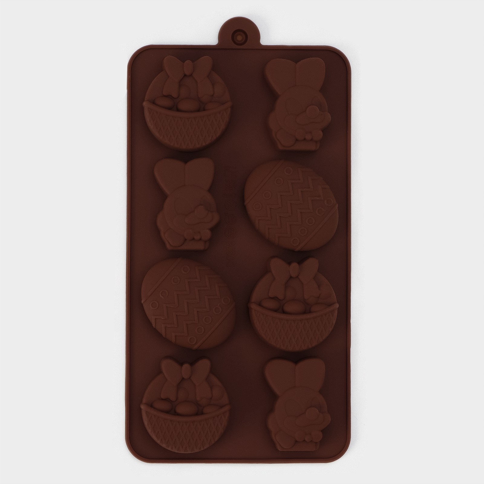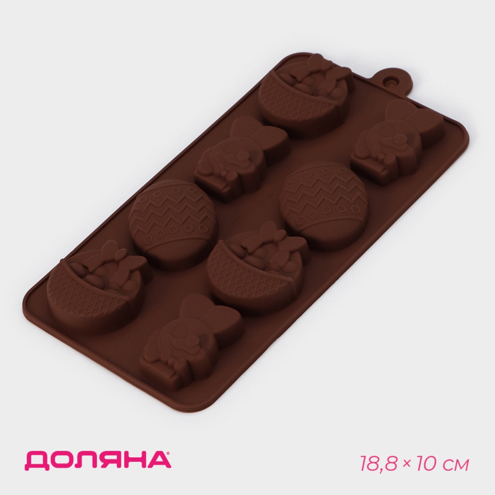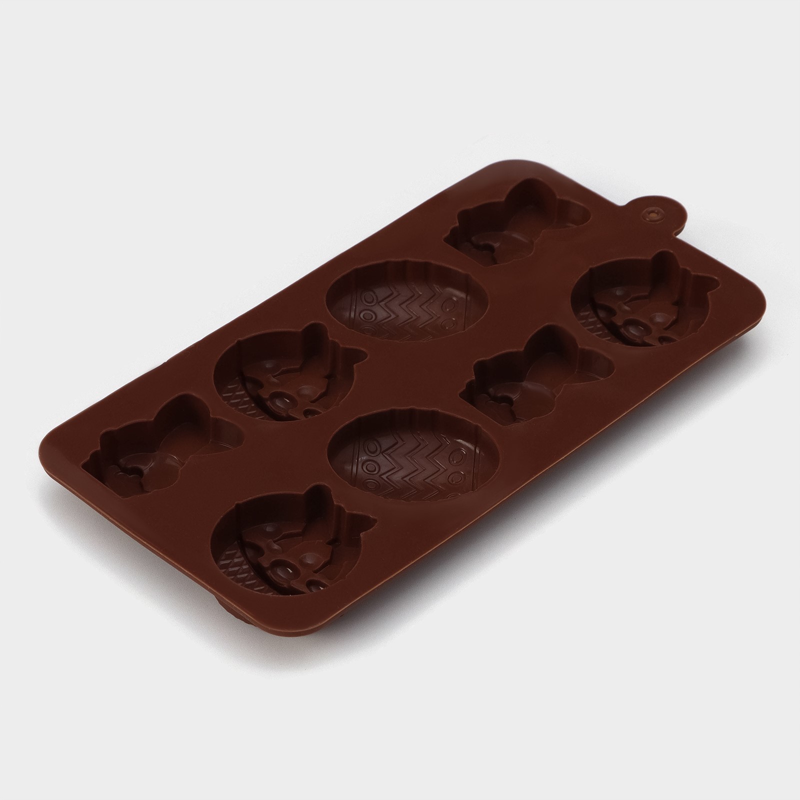 Форма силиконовая для украшений доляна «пасха», 18,8x10x1,5 см, 8 ячеек, цвет коричневый. Силиконовые формы для кондитерских украшений помогут оригинально декорировать десерт или выпечку! Приготовить миниатюрные украшения гораздо проще, чем кажется. Наполните силиконовую ёмкость расплавленным шоколадом, мастикой, карамелью и поместите в морозильную камеру. Вскоре у вас будут оригинальные сладости, которые сделают запоминающимся любой праздничный стол! Достоинства: содержимое не прилипает к стенкам изделия;силикон выдерживает температуру от -40 до 230 °С;материал не впитывает запахов и полностью безопасен для продуктов питания;форма легко отмывается. Создавайте неповторимые кулинарные шедевры вместе с формой «Пасха»! Цвет: Коричневый Форма: Прямоугольная Количество ячеек: 8 Крышка: Нет Материал: Силикон Тип покрытия: Без покрытия Ячейки: Да Наличие палочек для форм: Нет Разъёмная форма: Нет Съёмное дно: Нет Тематика: Животный мир  развернуть описание ▼