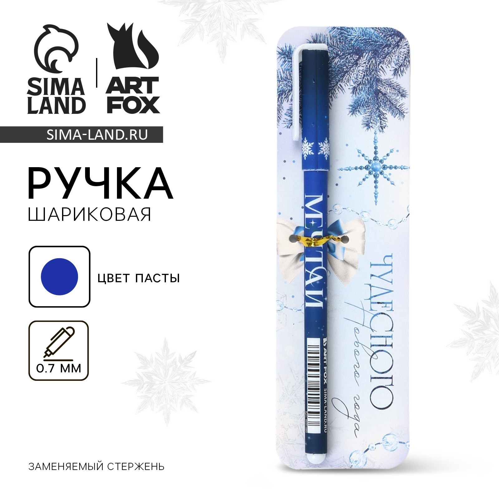 Ручка шариковая, синяя паста, 0.7 мм, с колпачком, пластик « чудесного нового года». Ручка отлично подойдет в качестве подарка. Яркий дизайн несомненно привлечет внимание и будет выделяться среди других предметов, а удобная форма корпуса позволит использовать ее с комфортом. Цвет стержня: синий;Стержень заменяемый: да;Материал: пластик;Форма корпуса: круглая.Диаметр пишущего узла, мм:0.7|Набор:Нет|Цвет стержня:Синий|Европодвес:Нет|Вид упаковки:Пакет|Символ года:Нет|Тематика праздника:Новый год|Адресат:Без адресата|Материал:Пластик|Материал упаковки:Полиэтилен|Составляющие набора:Ручка|Штрихкод на единице товара:Да|Наличие грипа:Нет|Страна:Китай  развернуть описание ▼