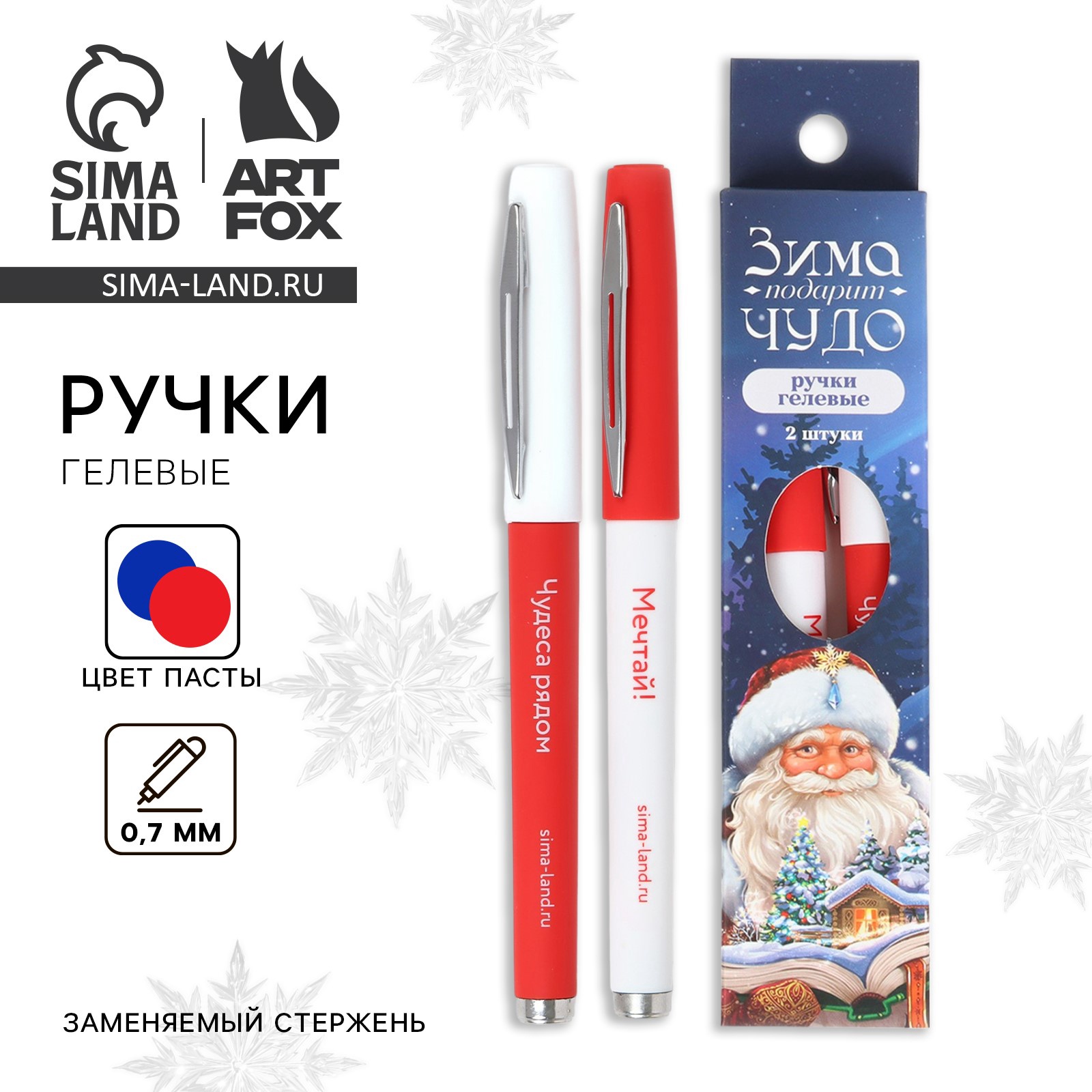 Ручка гелевая, синяя и красная паста 2 шт., 0.7 мм, с колпачком «зима подарит чудо». Ручка торговой марки ArtFox отлично подойдет в качестве подарка. Яркий дизайн несомненно привлечет внимание и будет выделяться среди других предметов, а удобная форма корпуса позволит использовать ее с комфортом. Вид ручки: гелевая;Цвет стержня: синий, красный;Стержень заменяемый: да;Материал: пластик;Форма корпуса: круглая.Упаковка: пакет. Диаметр пишущего узла, мм:0.7|Набор:Нет|Количество цветов:2|Особенности цвета:Без особенностей|Тип:Неавтоматическая ручка|Цвет стержня:Красный|Цвет стержня:Синий|Особенности ручек:Без особенностей|Европодвес:Да|Вид упаковки:Коробка картонная|Символ года:Нет|Тематика праздника:Новый год|Адресат:Без адресата|Материал:Пластик|Материал упаковки:Картон|Составляющие набора:Ручка|Стержень заменяемый:Да|Штрихкод на единице товара:Да|Наличие грипа:Нет|Страна:Китай  развернуть описание ▼