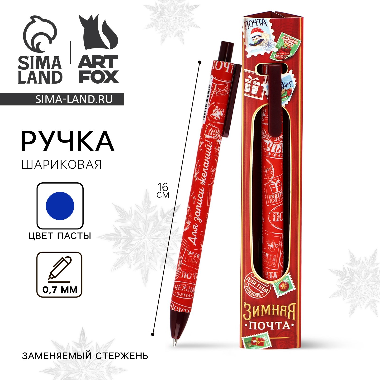 Ручка шариковая, синяя паста, 0.7 мм, автоматическая, матовая, в конверте «зимняя почта». Ручка торговой марки ArtFox отлично подойдет в качестве подарка. Яркий дизайн несомненно привлечет внимание и будет выделяться среди других предметов, а удобная форма корпуса позволит использовать ее с комфортом. Вид ручки: шариковая;Цвет стержня: синий;Стержень заменяемый: да;Материал: пластик;Форма корпуса: круглая.Упаковка: пакет. Диаметр пишущего узла, мм:0.7|Набор:Нет|Цвет стержня:Синий|Вид упаковки:Пакет|Символ года:Нет|Тематика праздника:Новый год|Адресат:Без адресата|Материал:Пластик|Материал упаковки:Полиэтилен|Составляющие набора:Ручка|Штрихкод на единице товара:Да|Наличие грипа:Нет|Страна:Китай  развернуть описание ▼