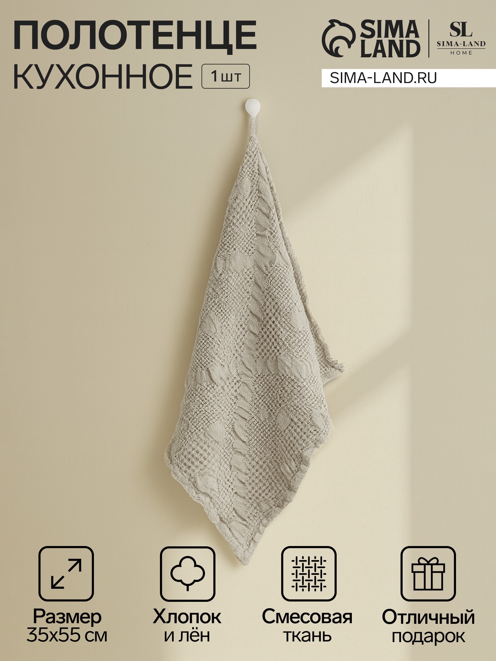 Полотенце кухонное Sl Home Linen Collection, 35 55 см, лён 80%, хлопок 20%, 265 г/м