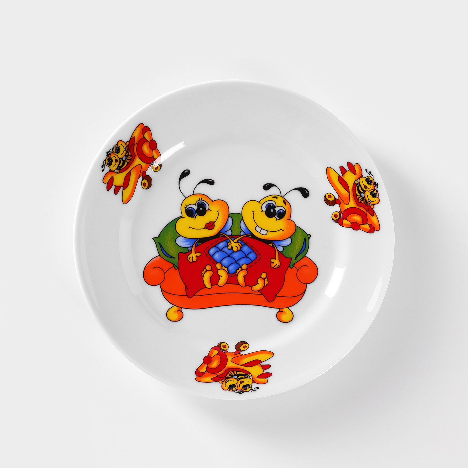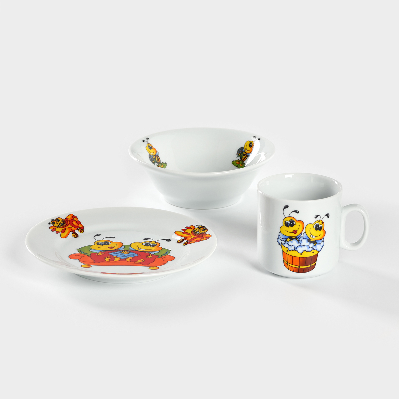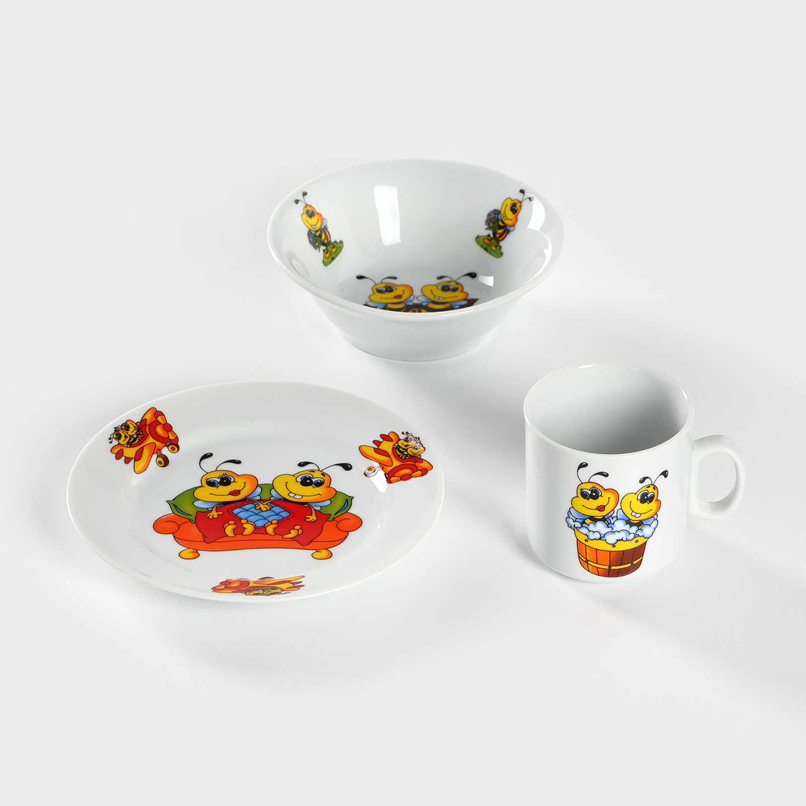 Набор фарфоровой посуды «пчёлы», 3 предмета: кружка 200 мл, салатник 350 мл, тарелка мелкая D=16,5 см, рисунок микс