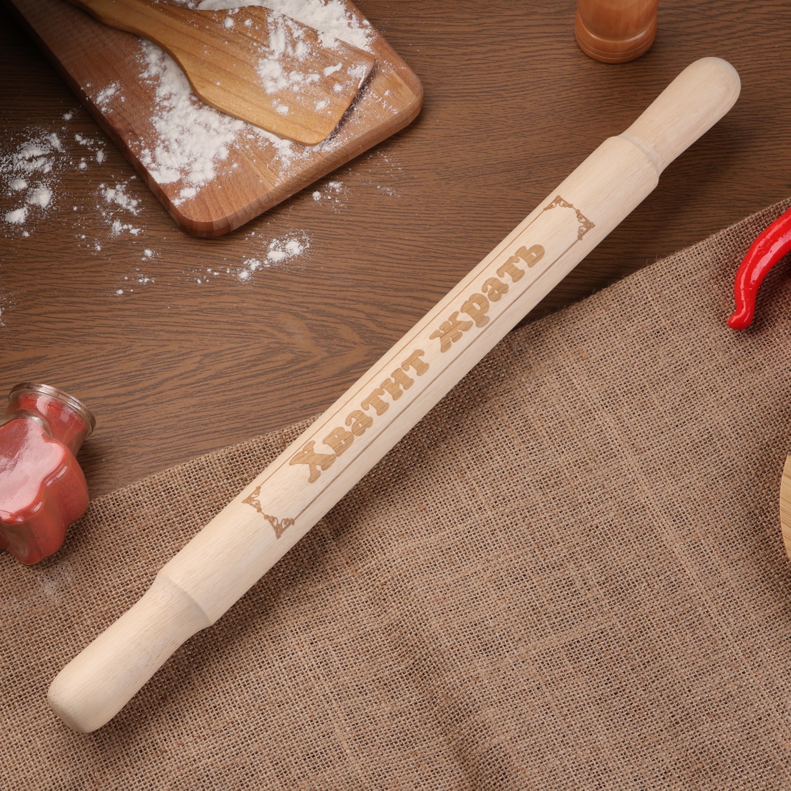Скалка большая с гравировкой "хватит жрать", 49см, D=36 мм