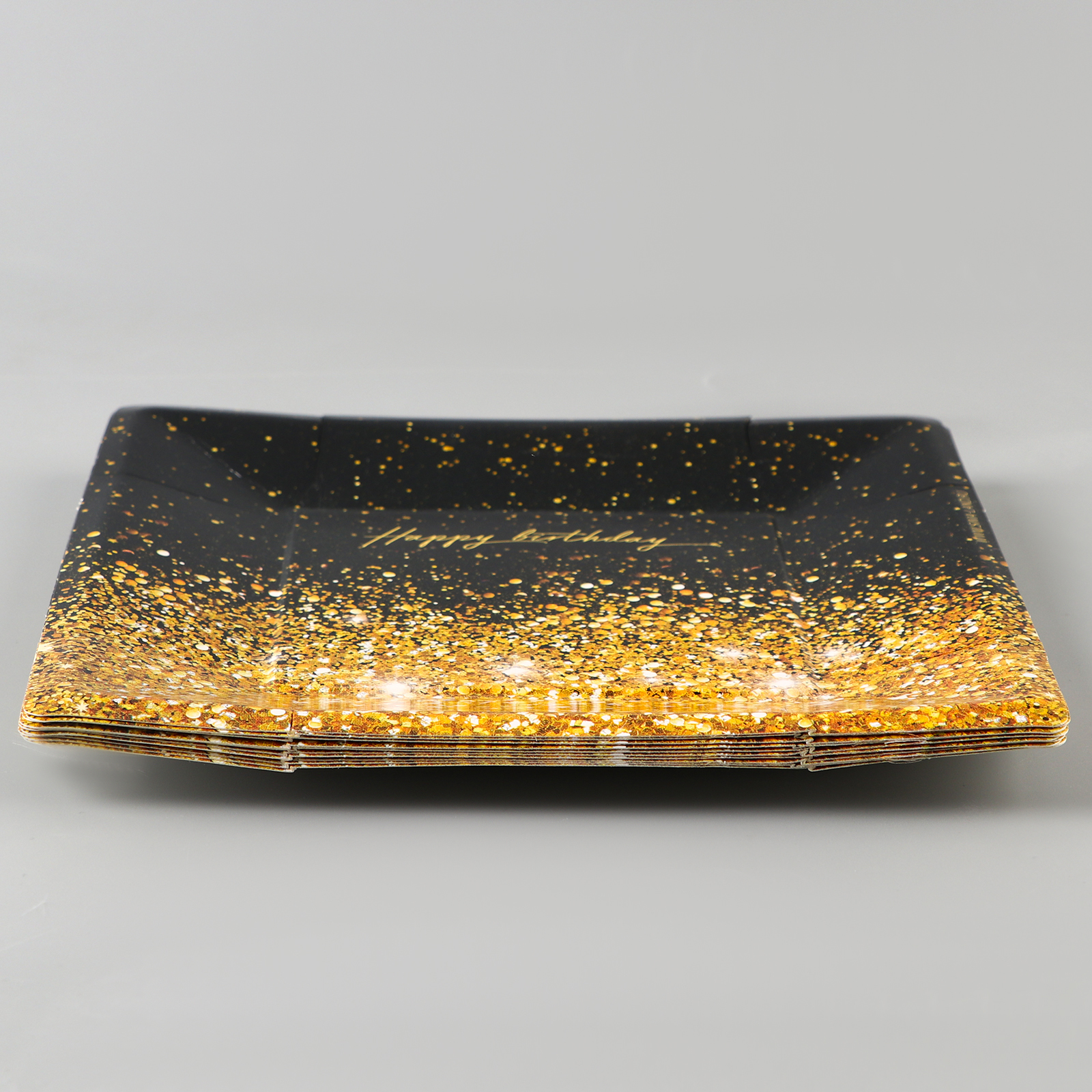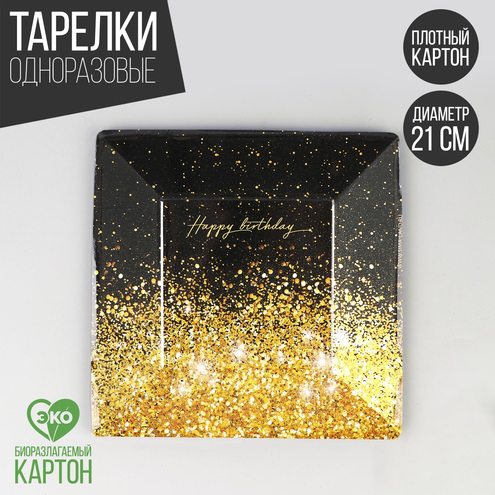 Тарелка одноразовая бумажная квадратная Happy Birthday, 21 см 1