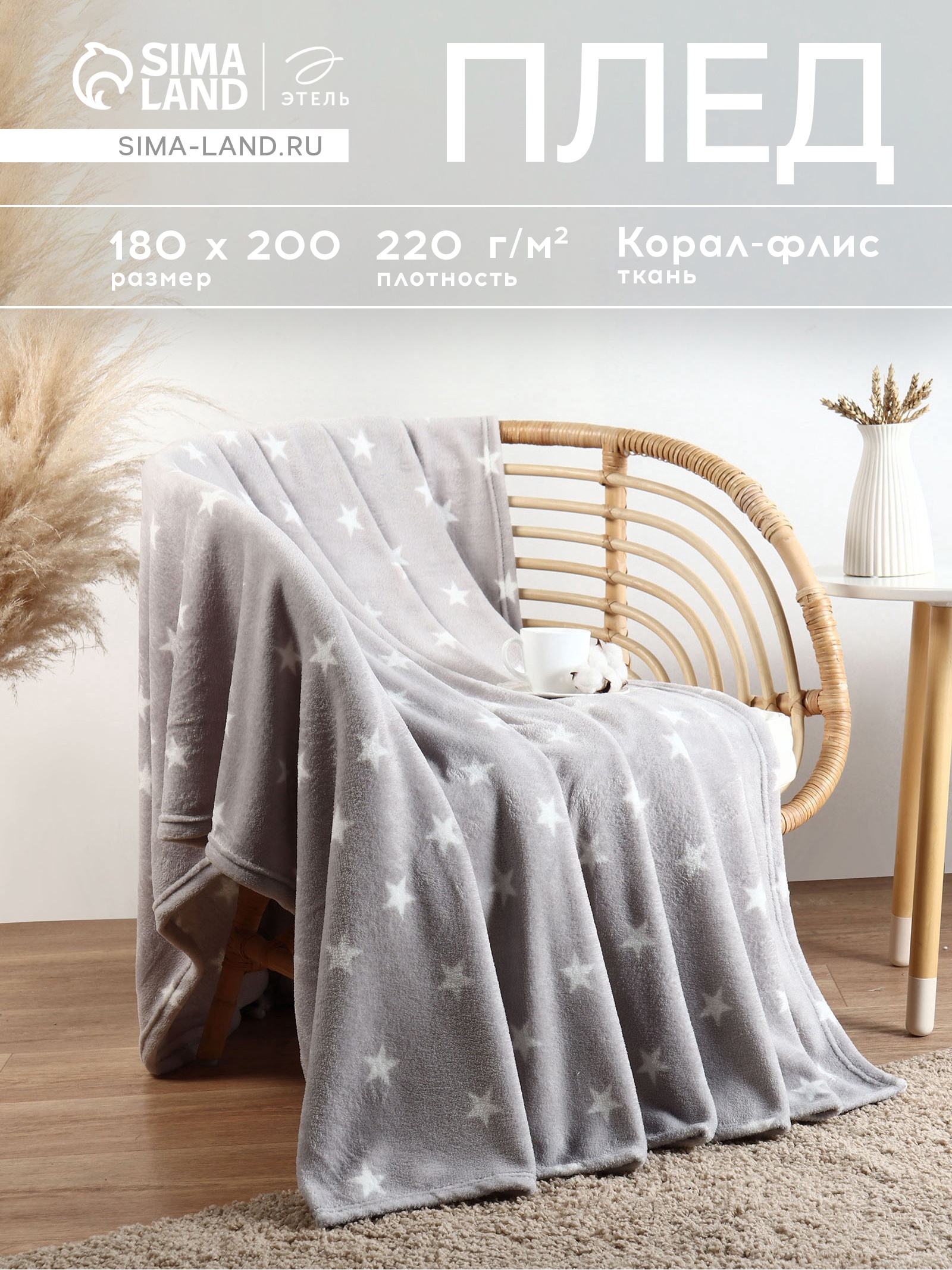 Плед «этель. звезды», 180 200 см, корал-флис