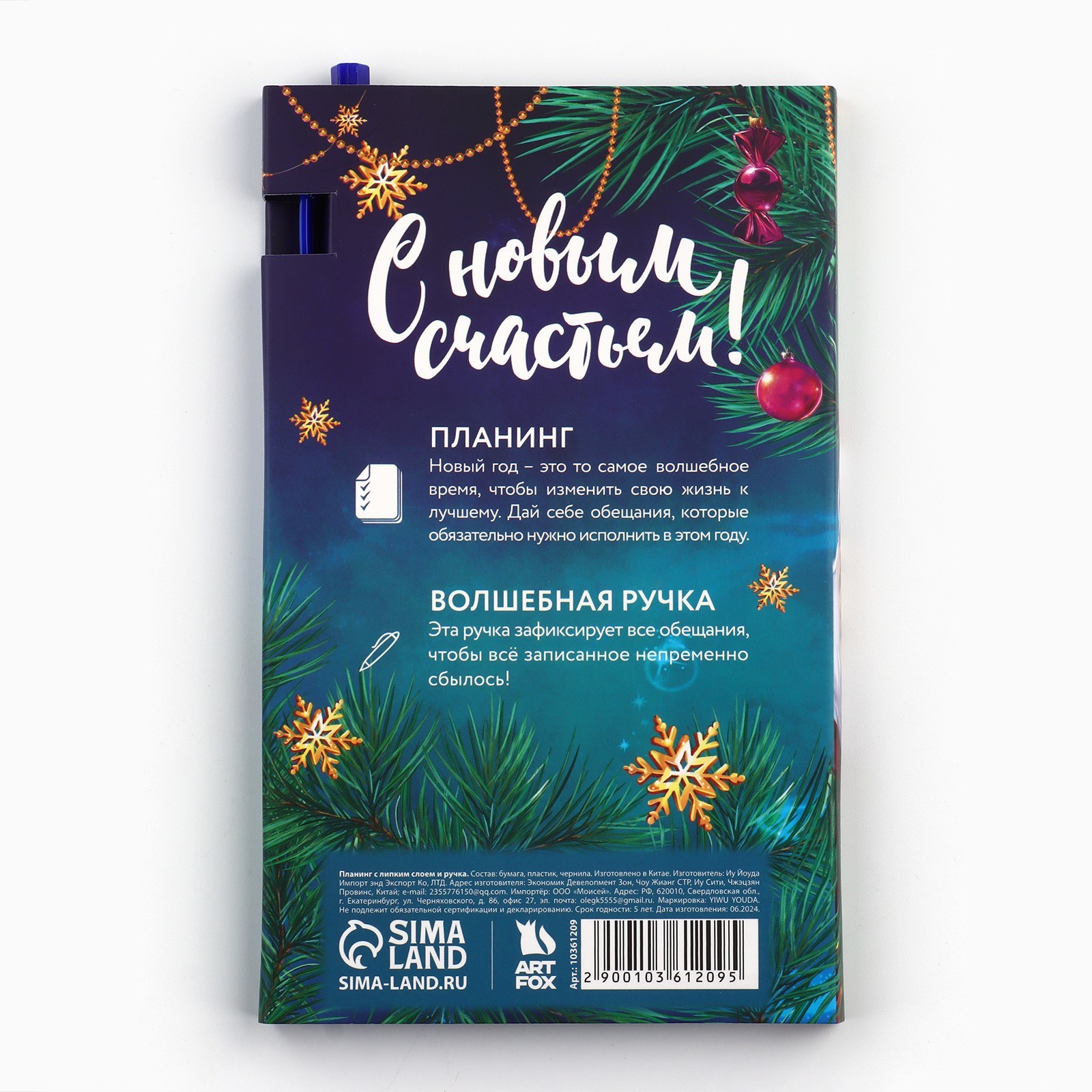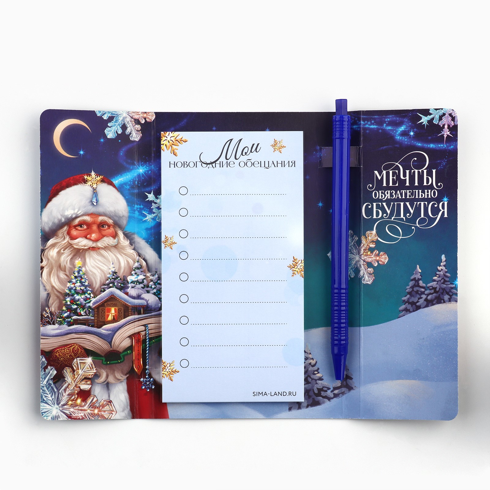 Подарочный набор новогодний, планер-стикеры 30 листов, ручка пластик «мечты сбываются в новом году! дед мороз». Подарочный набор станет прекрасным подарком на праздник. Ручка Материал: пластик, чернила;Вид ручки: шариковая;Цвет стержня: синий;Стержень заменяемый: да.Планинг Количество листов: 30;Материал: бумага, картон.Упаковка: пакет. Набор:Да|Тип скрепления:На склейке|Количество листов:30|Рисунок:Да|Символ года:Нет|Тематика праздника:Новый год|Материал:Пластик|Материал:Бумага|Тип ежедневника:Планинг|Особенности:Без особенностей|Дизайн обложки:С рисунком|Страна:Китай  развернуть описание ▼