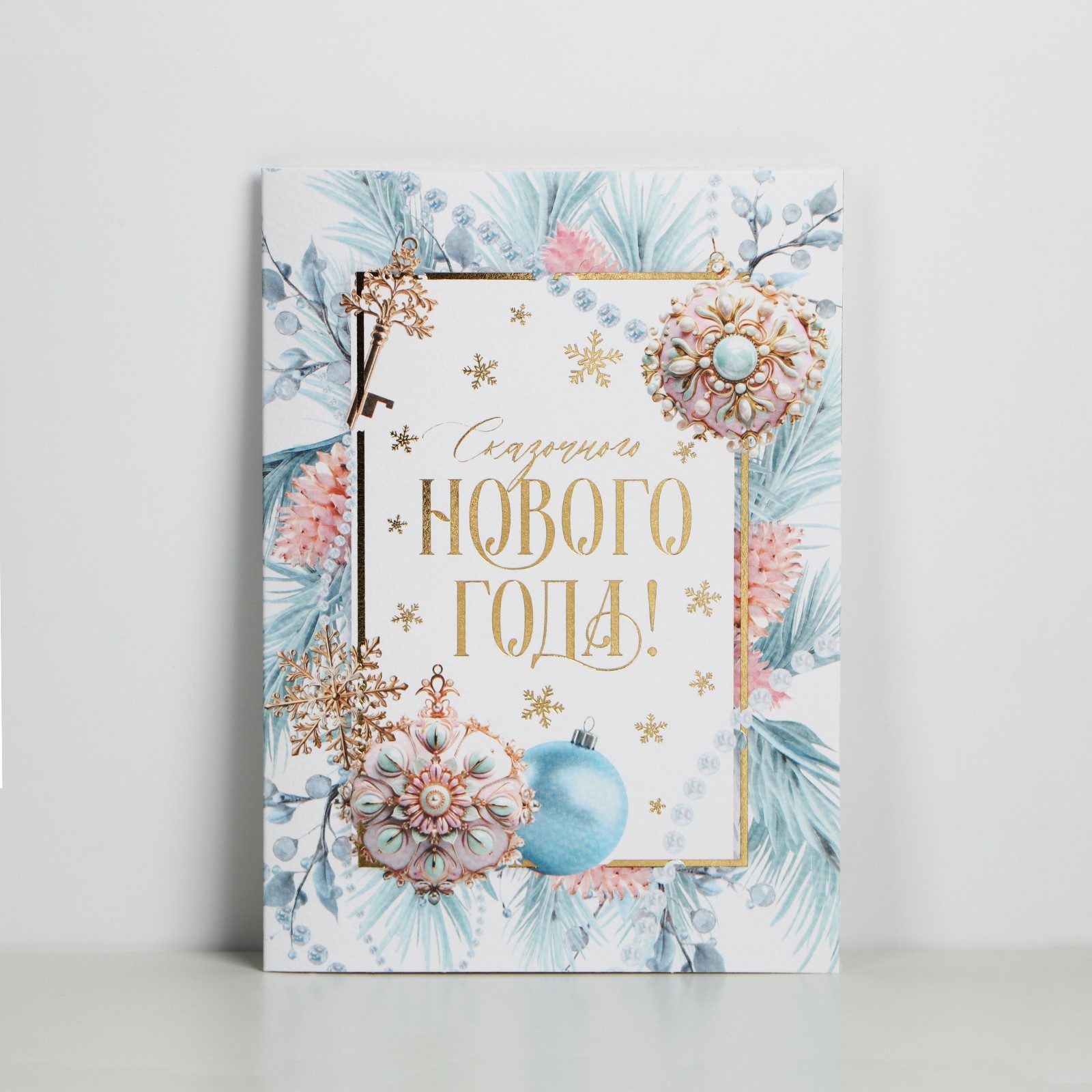 Открытка с новым годом на акварельном картоне «сказочного нового года!», тиснение, 11.5 х 16 см. Отделка:Тиснение|Отделка:Фактурная бумага|Символ года:Нет|Тематика праздника:Новый год|Адресат:Без адресата|Размер:Средний (16-21 см)|Форма:Стандарт|Страна:Китай  развернуть описание ▼