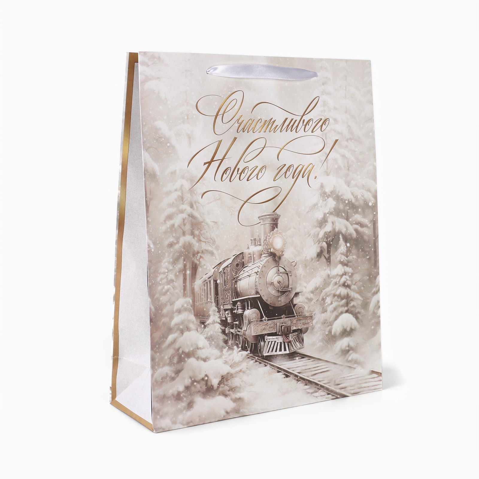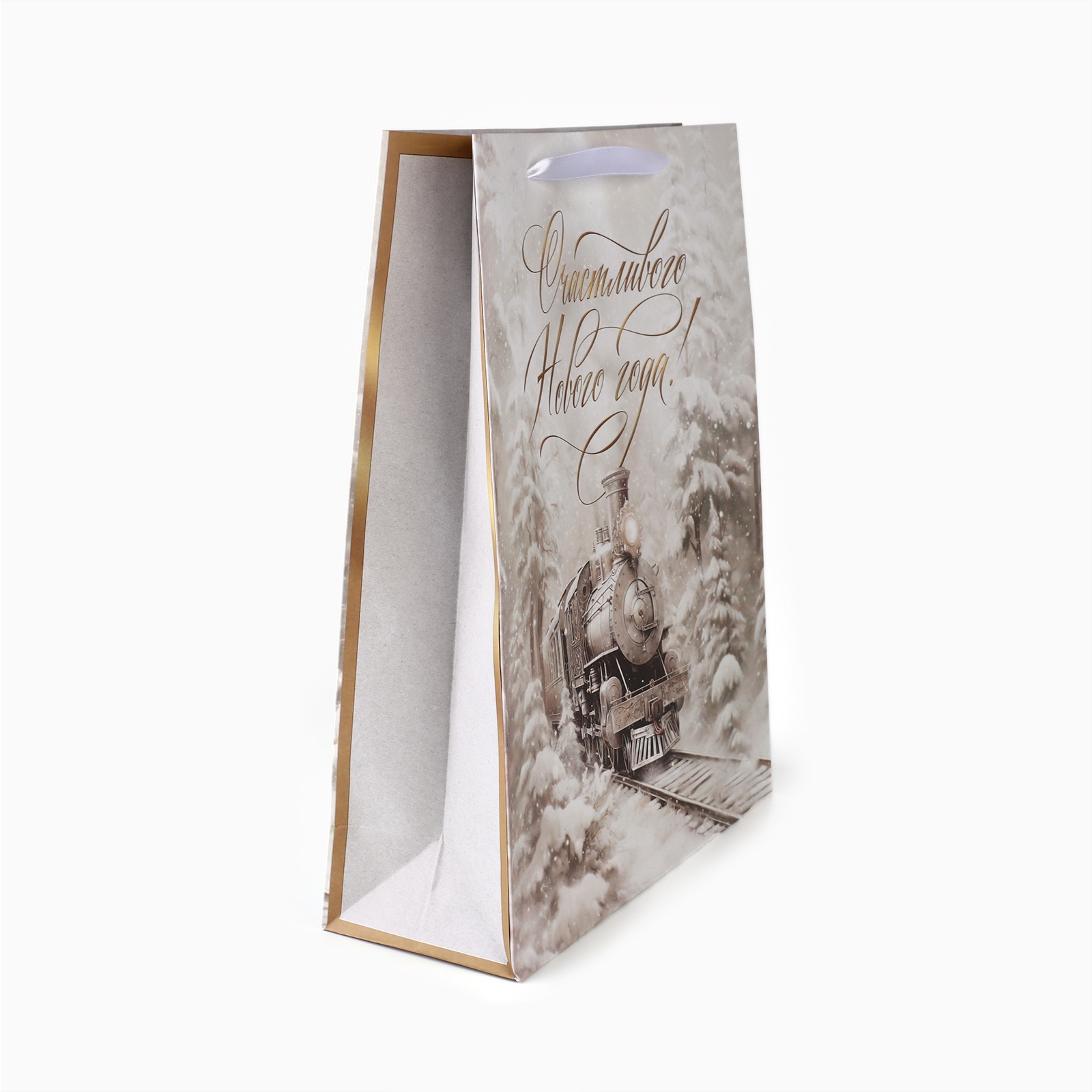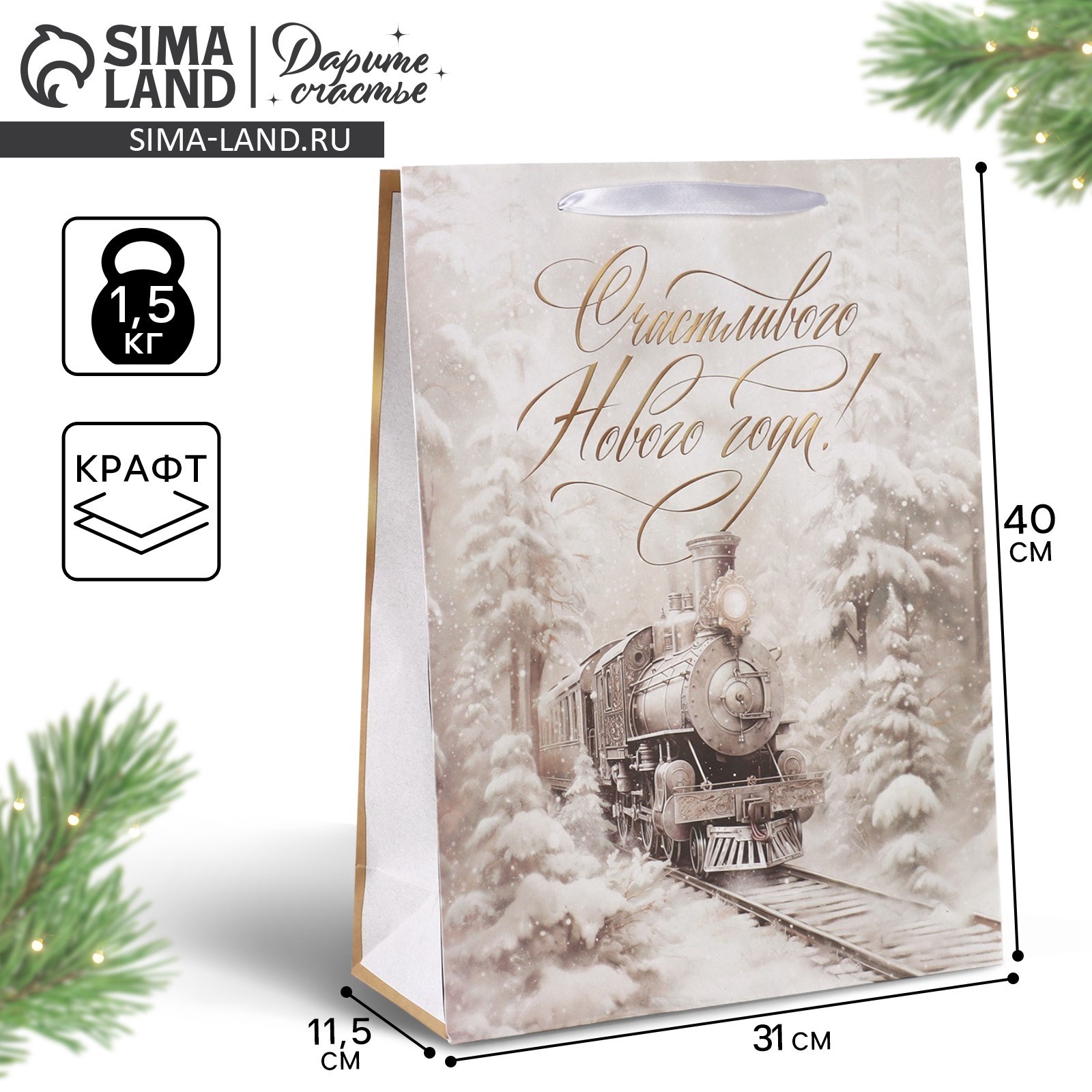 Пакет подарочный новогодний крафтовый «с новым годом», l 31 х 40 х 11.5 см. Цвет:Серый|Для кого:Унисекс|Плотность, г/м :190|Тематика:Новогодняя|Символ года:Нет|Тематика праздника:Новый год|Вид ручки:Ручка-лента|Страна:Китай