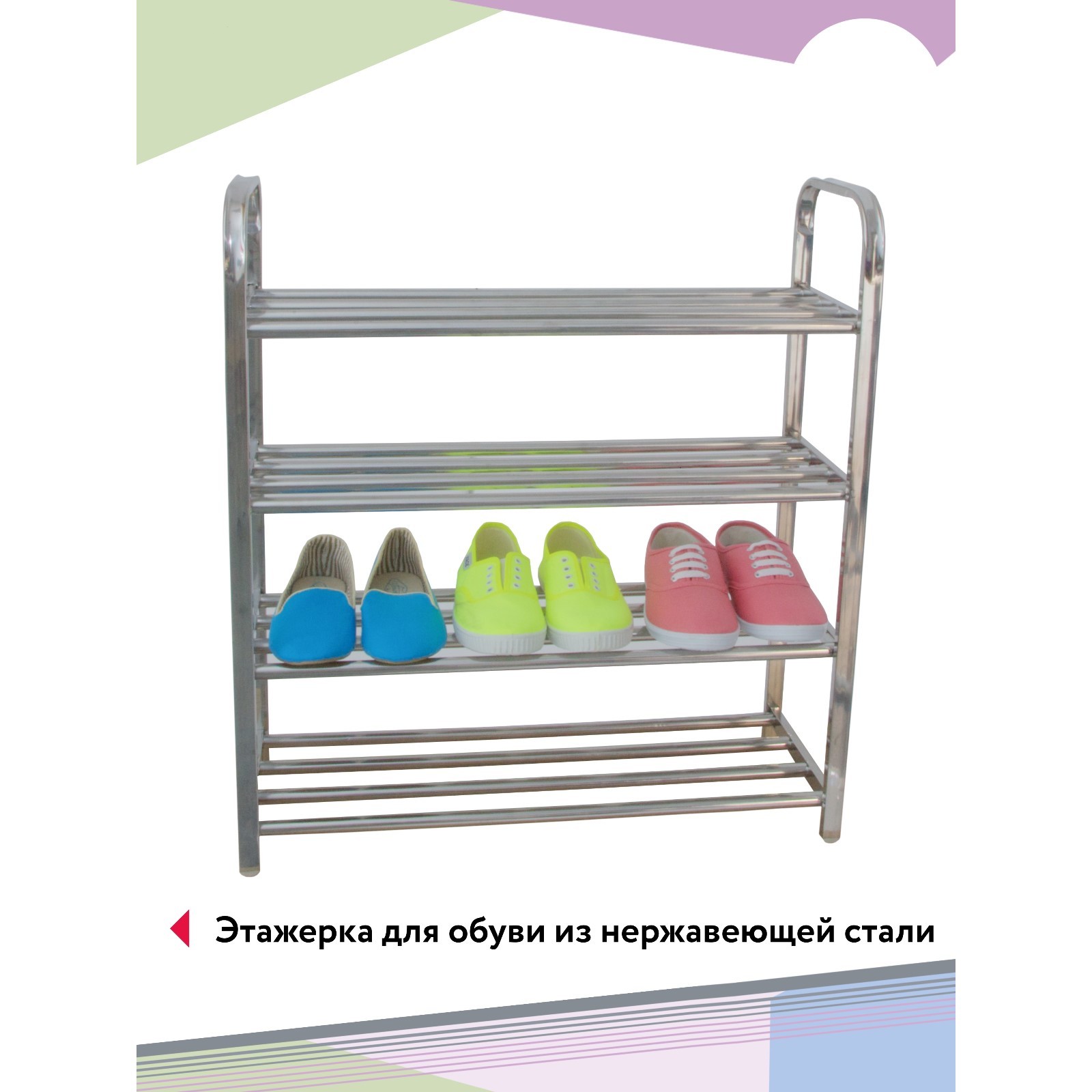 Этажерка для обуви arena, 610x230x670 мм, 4-х ярусная, цвет хром. Цвет: Хромированный Ширина, мм: 610 Глубина, мм: 230 Высота, мм: 670 Количество секций: 4 Материал: Нержавеющая сталь Поставляется в разобранном виде: Да  развернуть описание ▼