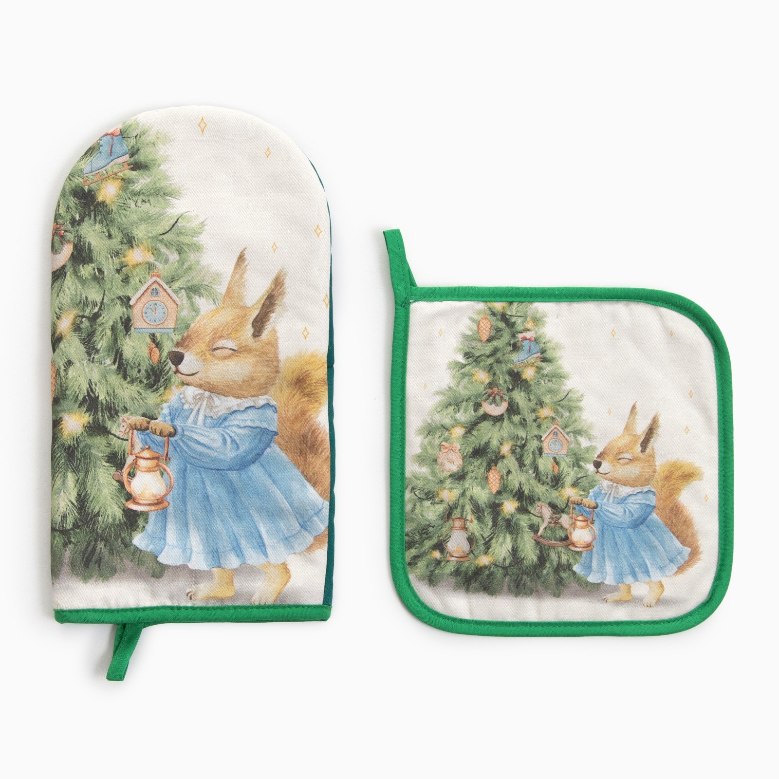 Набор кух. "сказочная ёлка" варежка-прихватка 15х28см, прихватка 19х19см,100%хл