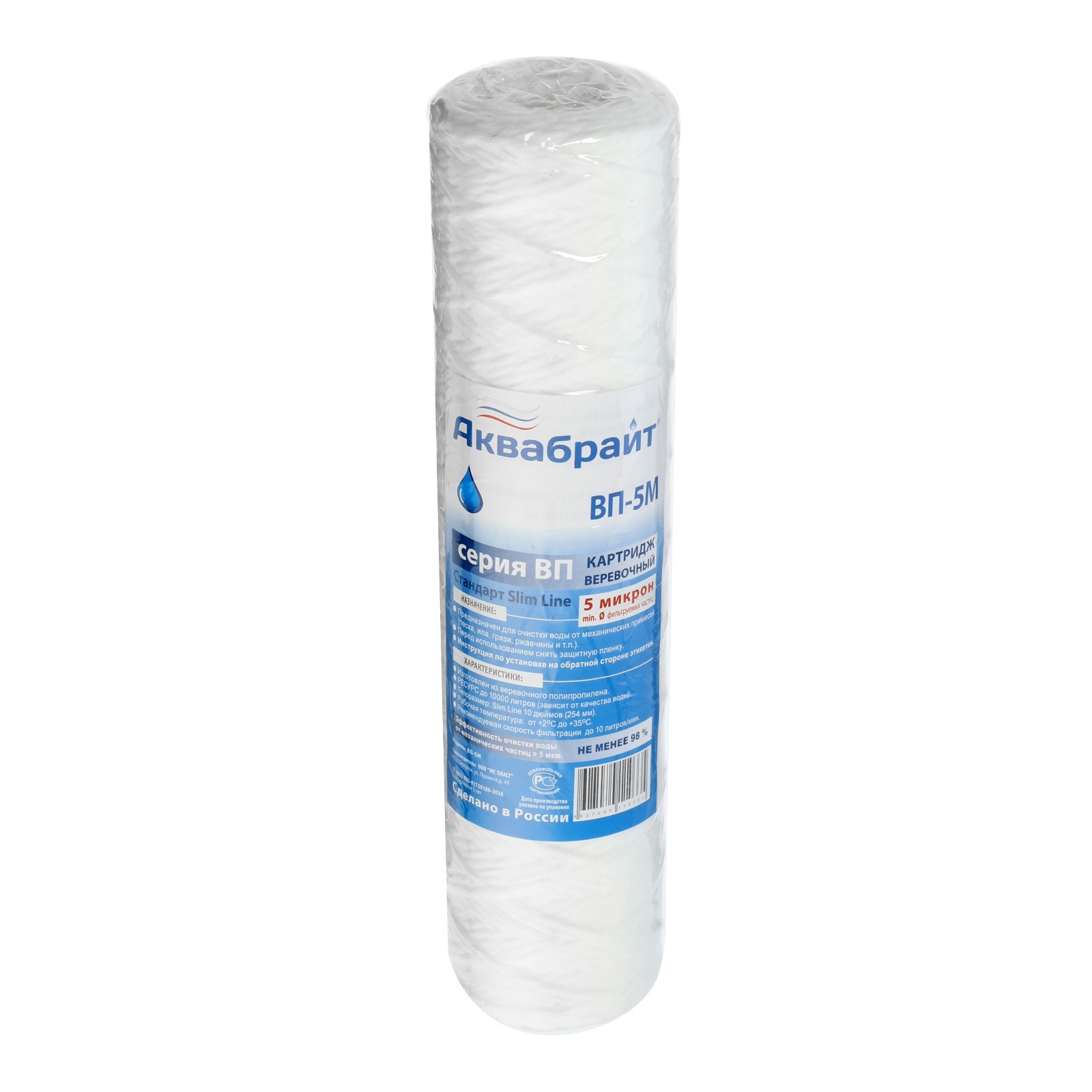 Картридж "аквабрайт" вп-5 м, 10" Sl, полипропиленовая нить, для холодной воды, 5 мкм