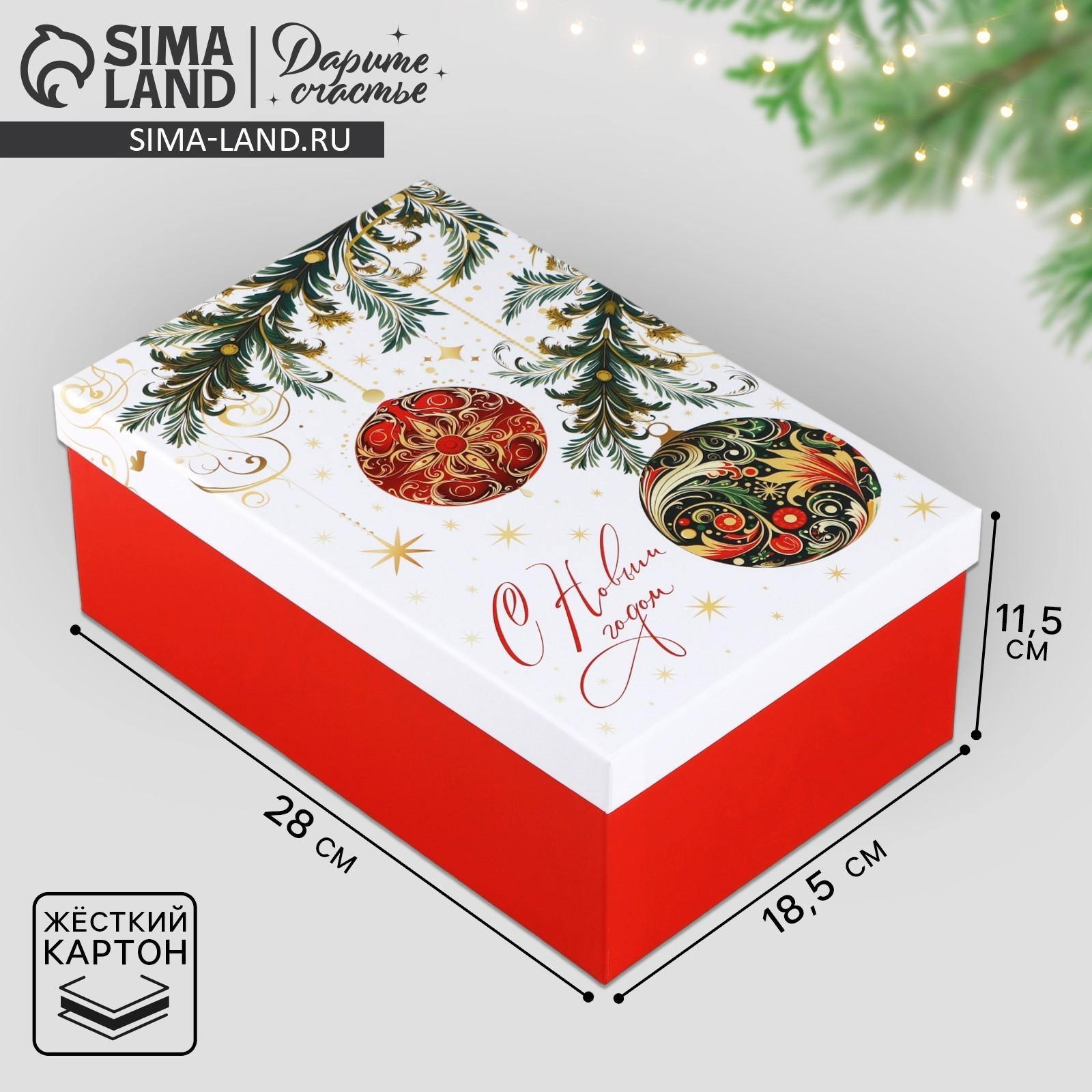 Коробка подарочная «с новым годом», 28 х 18.5 х 11.5 см. Цвет:Белый|Цвет:Красный|Цвет:Разноцветный|Форма:Прямоугольная|Плотность, г/м :1000|Длина, см:28|Ширина, см:18.5|Высота, см:11.5|Тематика:Новогодняя|Символ года:Нет|Тематика праздника:Новый год|Материал:Картон|Вид:Жёсткие (крышка+дно)|Размер:Большой (25-45 см)|Страна:Россия  развернуть описание ▼
