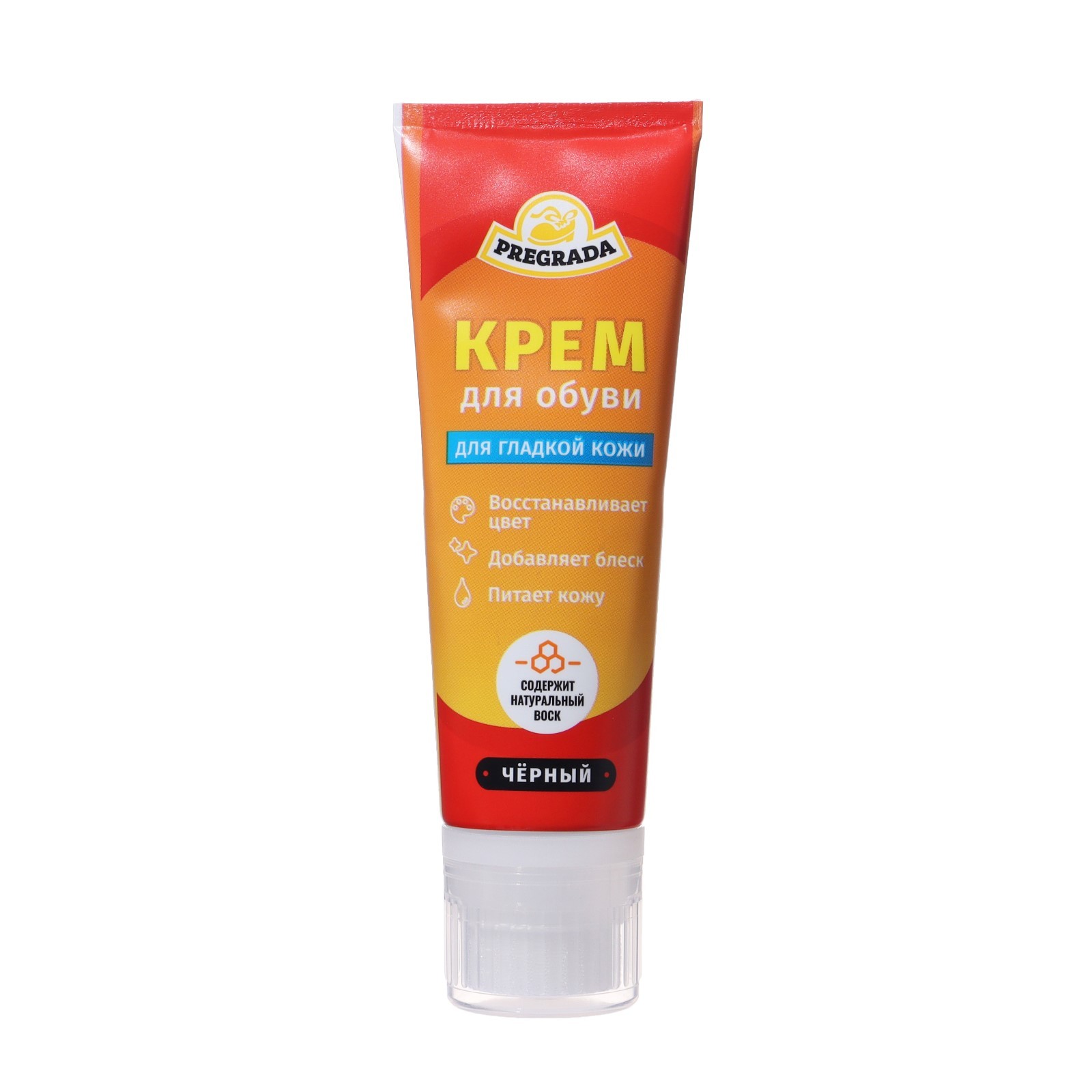 Крем для обуви pregrada с губкой, черный, 75 мл. Крем для обуви Pregrada с губкой, черный, 75 мл - это прекрасное средство для ухода за вашей обувью. Он помогает сохранить ее внешний вид и продлить срок службы. Крем легко наносится благодаря удобной губке, которая идет в комплекте. Он быстро впитывается в кожу, делая ее мягкой и эластичной. Черный цвет крема позволяет использовать его для обновления и восстановления черной обуви. Это надежное и эффективное средство для защиты вашей обуви от влаги, грязи и пыли. Цвет: Чёрный Температурное ограничение: Нет С губкой: Да Назначение: Универсальное Эффект: Блеск Эффект: Защита Форма выпуска: Тюбик  развернуть описание ▼