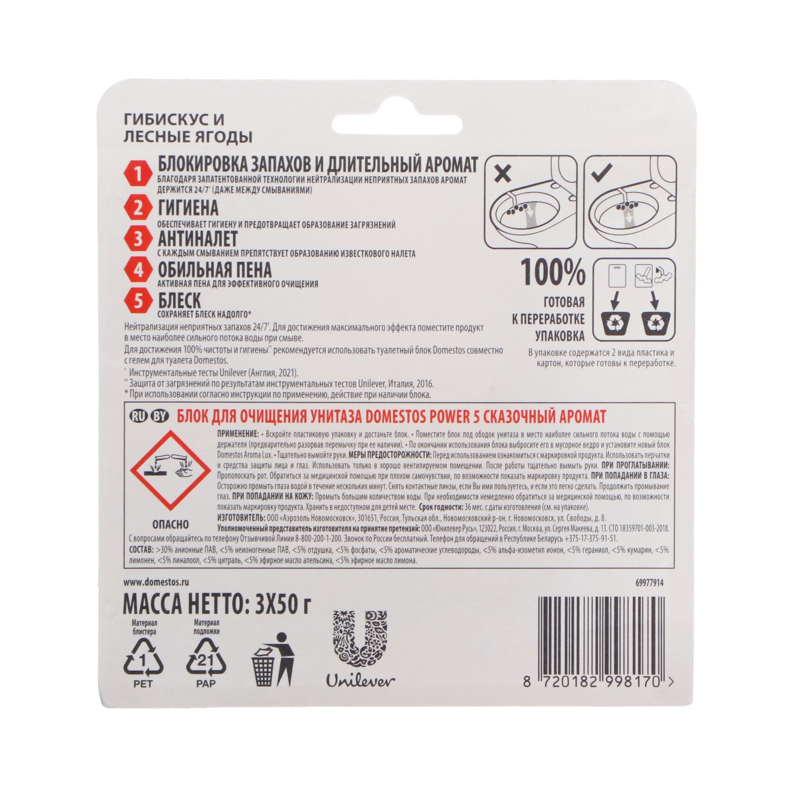 Блок для очищения унитаза Domestos Power 5 Trio гибискус и лесные ягоды 150 гр