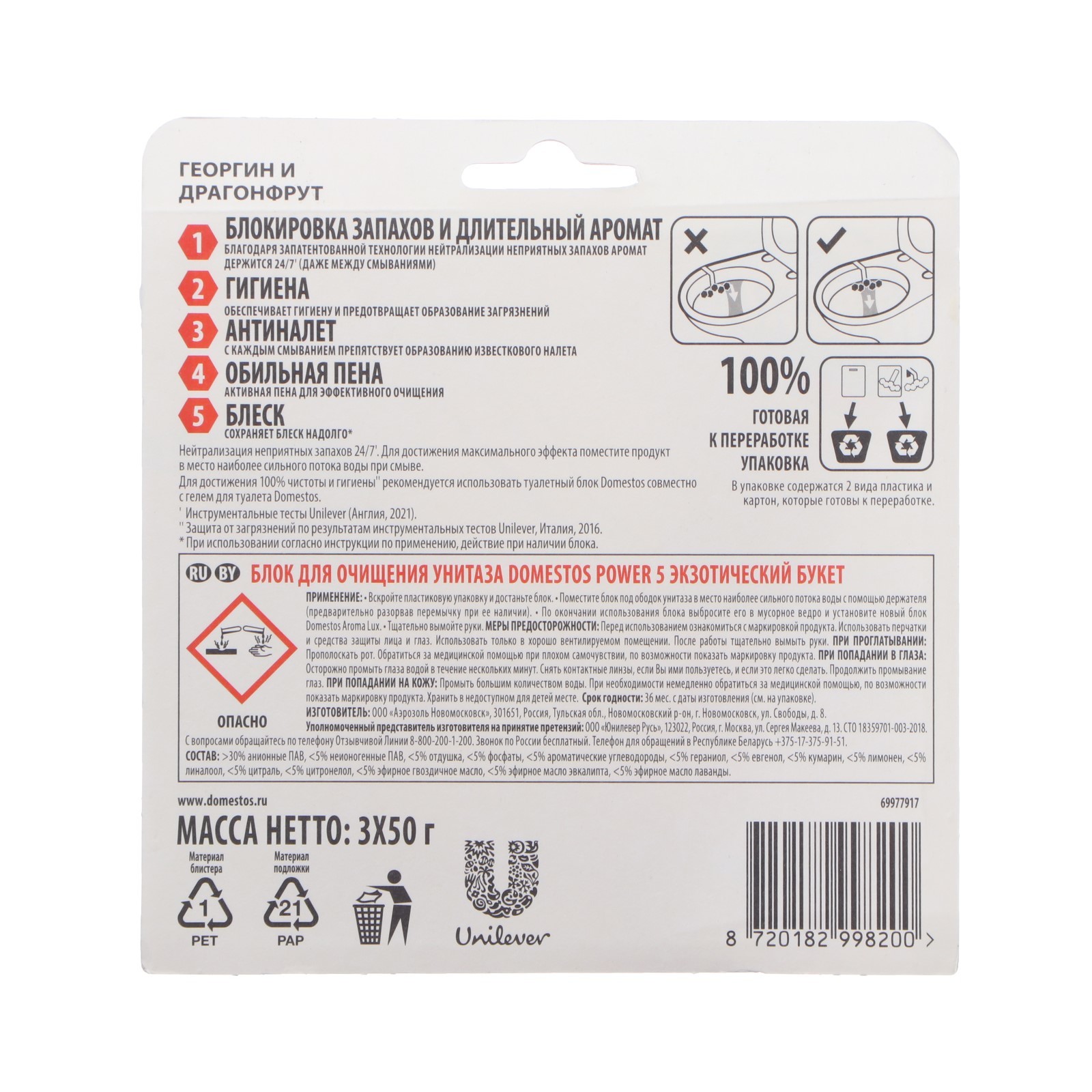 Блок для очищения унитаза domestos power 5 trio экзотический букет, 150 гр. Блок для очищения унитаза DOMESTOS Power 5 TRIO экзотический букет, 150 гр - это инновационное средство для очищения и дезинфекции унитаза. Оно содержит активные компоненты, которые эффективно удаляют пятна и загрязнения, а также уничтожают бактерии и вирусы. Блок для очищения унитаза DOMESTOS Power 5 TRIO экзотический букет, 150 гр имеет приятный аромат и обеспечивает длительную защиту от микробов. Этот продукт предназначен для использования на унитазах и других поверхностях в ванной комнате. Он легко устанавливается на унитаз и начинает работать автоматически при каждом смывании. Блок для очищения унитаза DOMESTOS Power 5 TRIO экзотический букет, 150 гр обеспечивает эффективное очищение и дезинфекцию, а также приятный аромат в ванной комнате. Этот продукт безопасен для использования на большинстве поверхностей, включая фарфор, керамику и пластик. Он не содержит абразивных частиц, которые могут повредить поверхность унитаза или других предметов в ванной комнате. Блок для очищения унитаза DOMESTOS Power 5 TRIO экзотический букет, 150 гр - это удобное и эффективное средство для поддержания чистоты и гигиены в ванной комнате. Он обеспечивает длительную защиту от микробов и неприятных запахов, а также делает процесс уборки более простым и быстрым. parts count: 0 Аромат: Экзотик Температурное ограничение: Нет Вид средства: Сменный блок  развернуть описание ▼