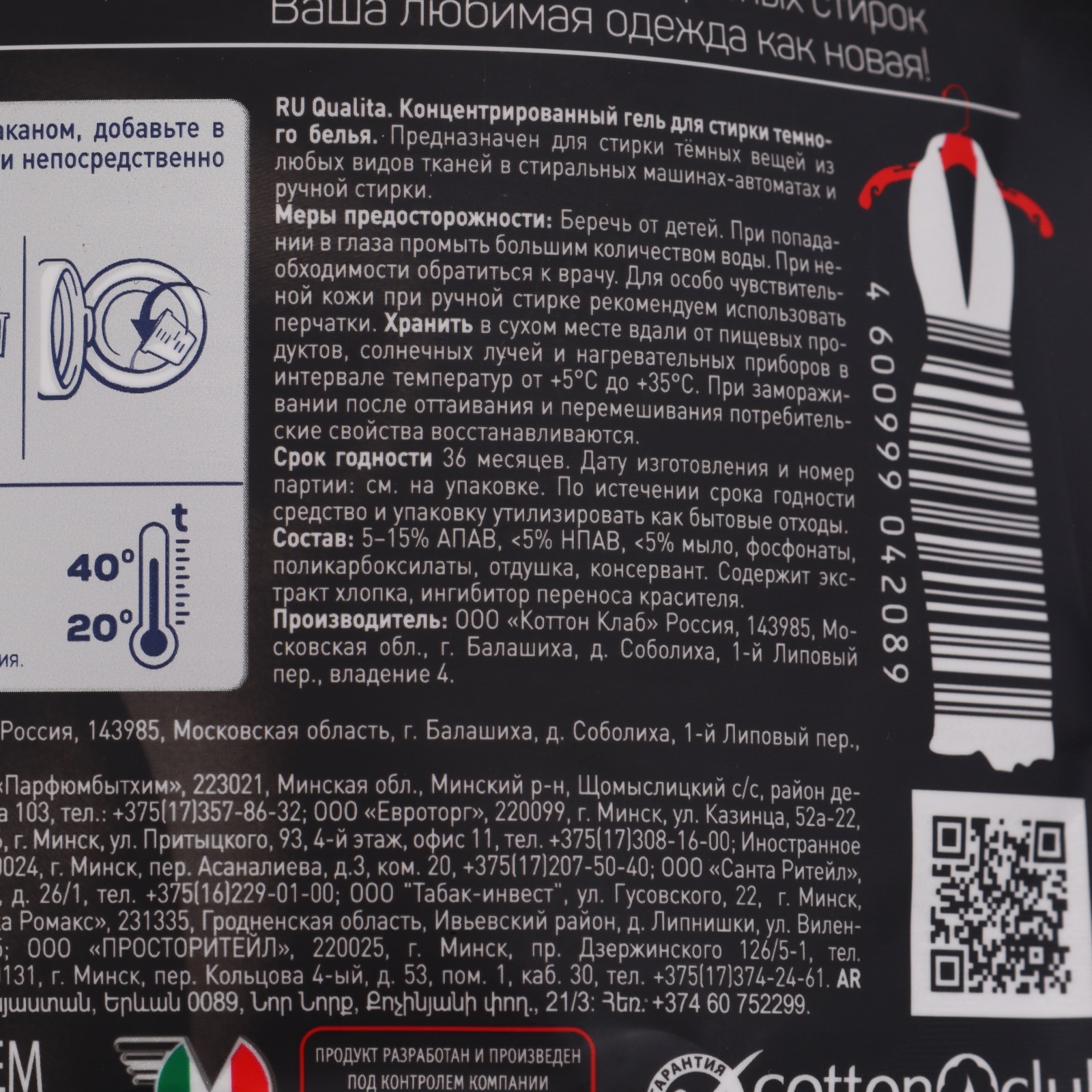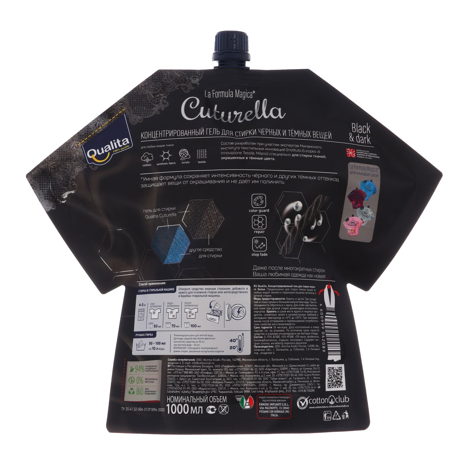 Концентрированный гель Cuturella для стирки чёрных и тёмных вещей, 1 л