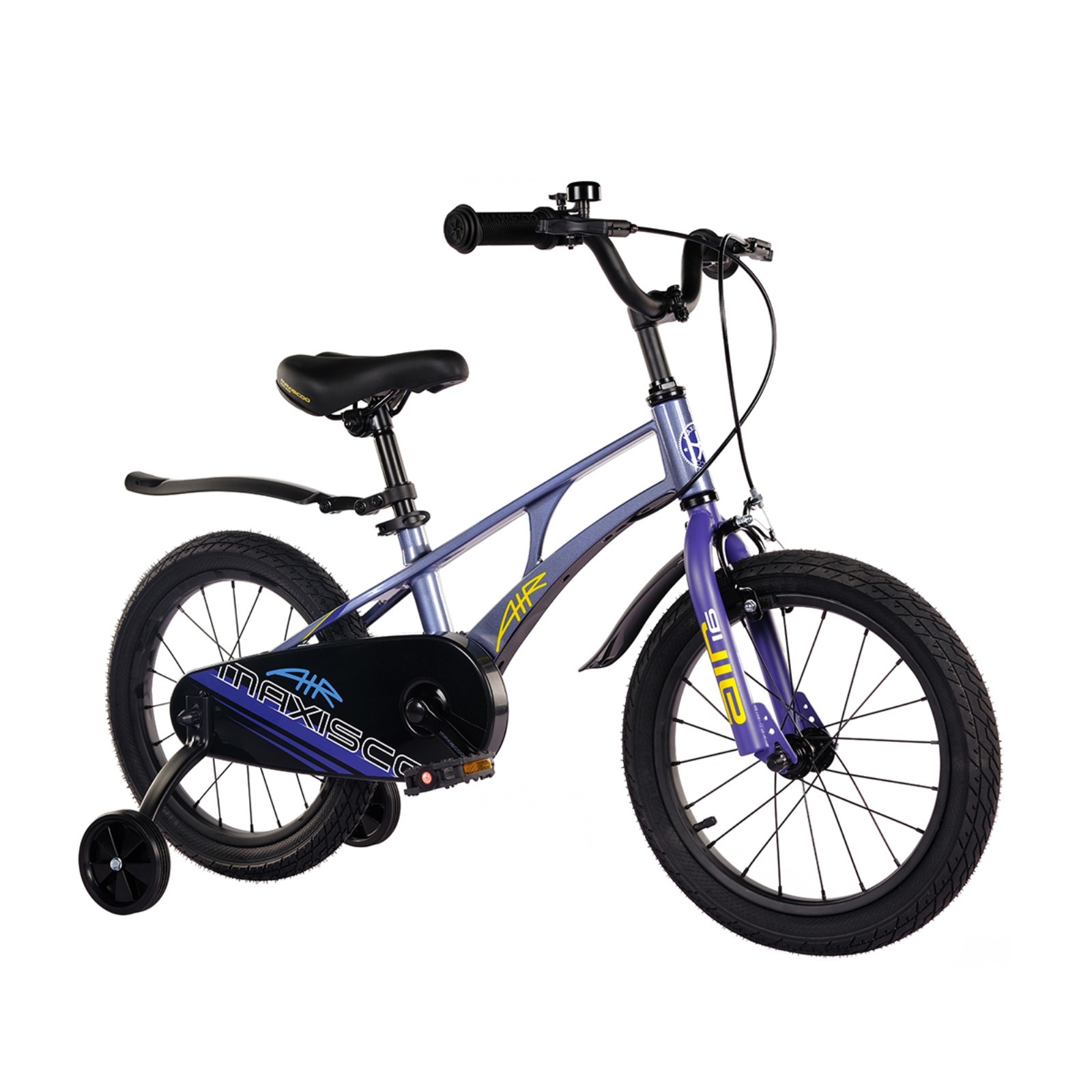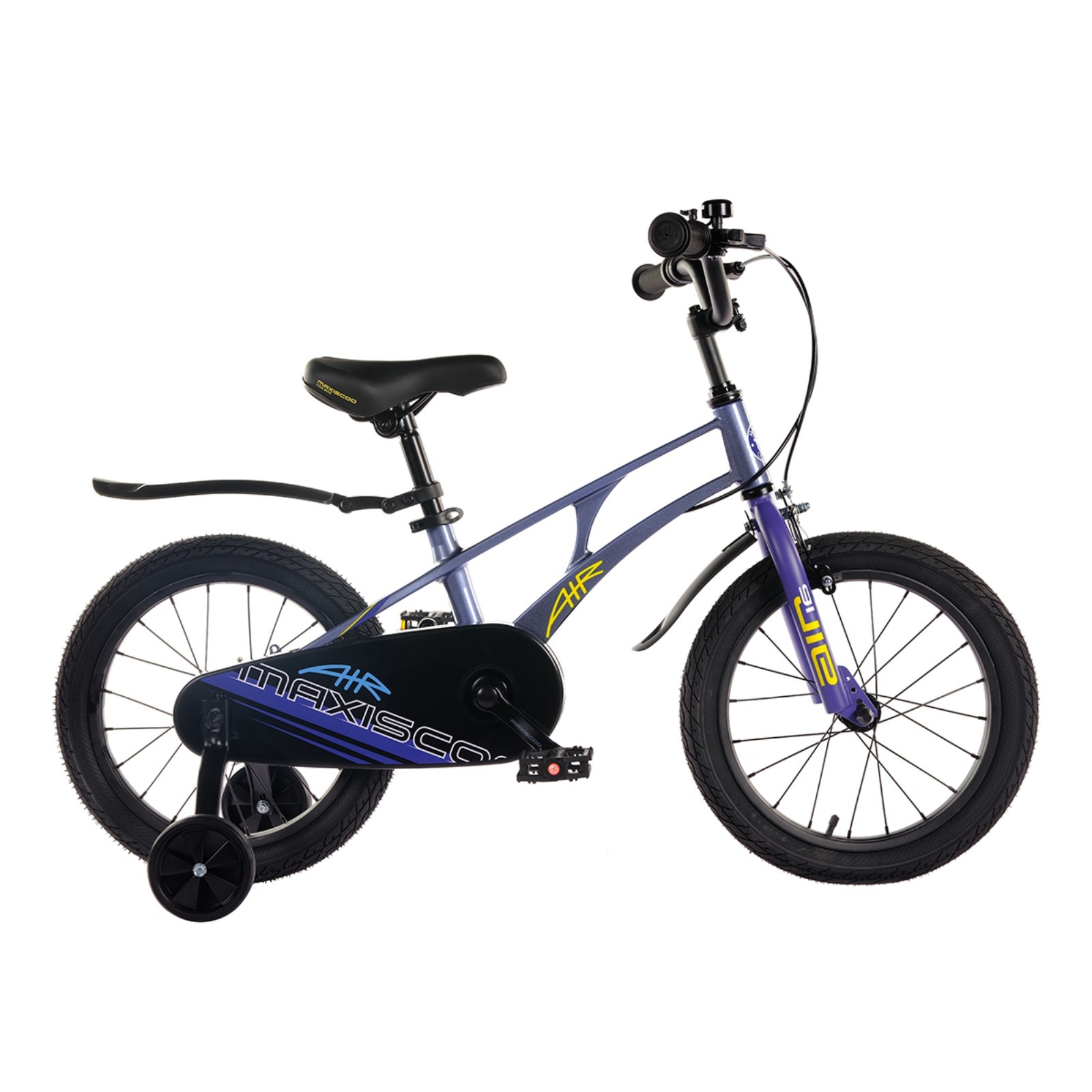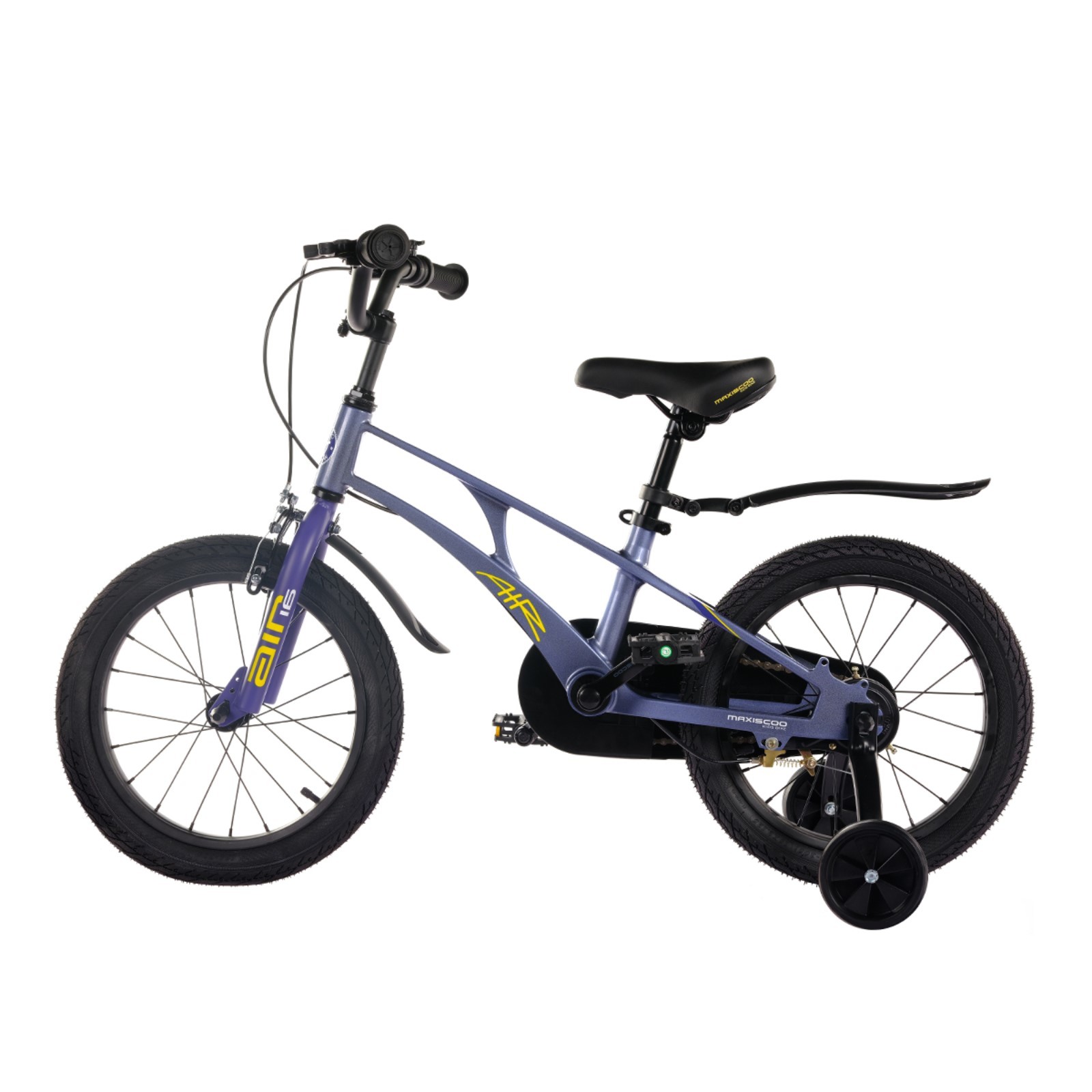 Велосипед 16 maxiscoo air стандарт плюс, цвет синий карбон. Технические характеристики: рама - облегченный магниевый сплав;прочная стальная вилка;стальные колесные диски;задний роллерный и передний ободной ручной тормоз;надежный стальной руль с регулировкой по высоте;картриджная каретка на промподшипниках со съемными шатунами;прорезиненные ручки Maxiscoo;эргономичное сиденье, регулируемое по высоте;дополнительные боковые колеса;полная защита цепи для безопасности;нескользящие педали;процент сборки из коробки - 85%;крылья в комплекте. Цвет: Синий Для кого: Унисекс Количество скоростей: 1 Максимально допустимый вес, кг: 40 Модельный год: 2024 Наличие амортизаторов: Без амортизаторов Материал рамы: Магниевый сплав Диаметр колёс, дюймы: 16 Передний тормоз: Ободной (V-Brake) Задний тормоз: Роллерный Рекомендуемый возраст, лет: 5 - 6 Рекомендуемый рост, см: 100 - 120 Подножка: Нет Вид: Универсальный Дополнительные боковые колёса: Да  развернуть описание ▼