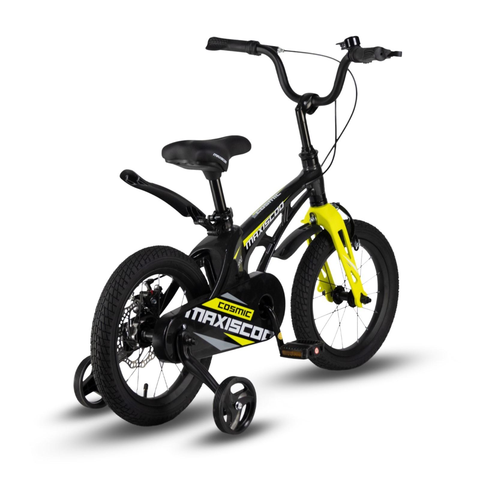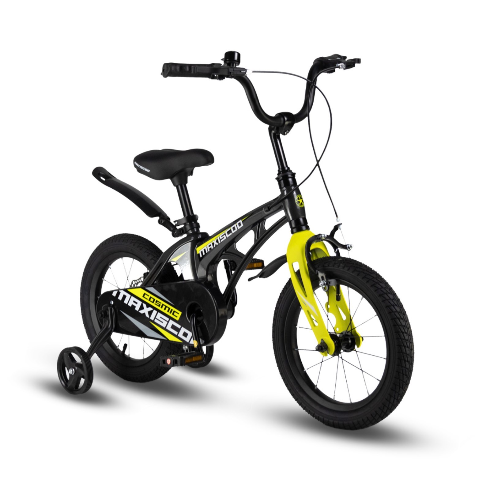 Велосипед 14 maxiscoo cosmic стандарт плюс, цвет мокрый антрацит. Технические характеристики: рама - облегченный магниевый сплав;вилка - облегченный магниевый сплав;стальные колесные диски;задний дисковый и передний ободной ручной тормоз;надежный стальной руль с регулировкой по высоте;прорезиненные ручки с поддержкой запястья;эргономичное сиденье, регулируемое по высоте;дополнительные боковые колеса;полная защита цепи для безопасности;нескользящие педали;процент сборки из коробки - 85%;крылья в комплекте. Цвет: Чёрный Для кого: Унисекс Количество скоростей: 1 Максимально допустимый вес, кг: 40 Модельный год: 2024 Наличие амортизаторов: Без амортизаторов Материал рамы: Магниевый сплав Диаметр колёс, дюймы: 14 Передний тормоз: Ободной (V-Brake) Задний тормоз: Дисковый механический Рекомендуемый возраст, лет: 4 - 6 Рекомендуемый рост, см: 90 - 110 Подножка: Нет Вид: Универсальный Дополнительные боковые колёса: Да  развернуть описание ▼
