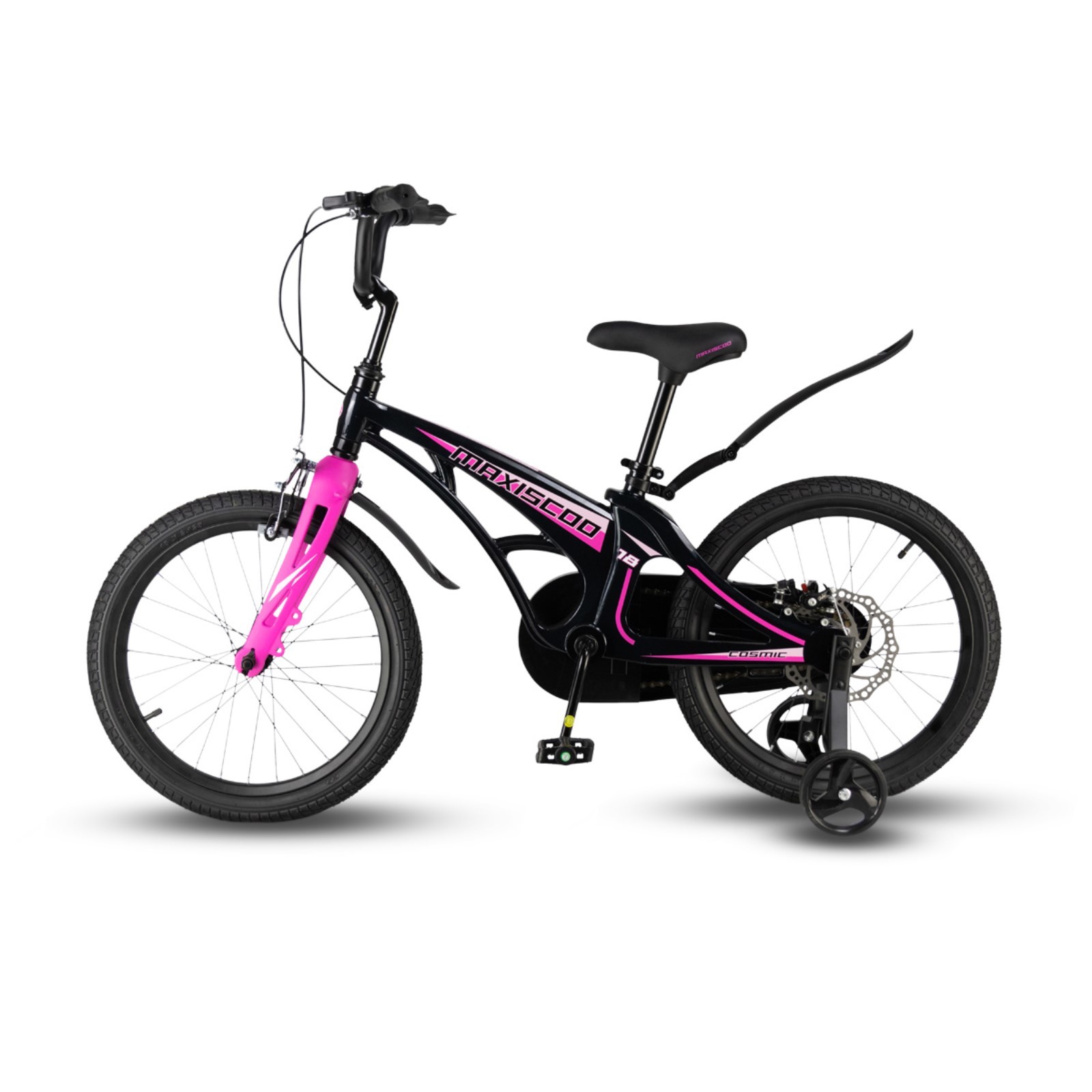Велосипед 18 maxiscoo cosmic стандарт, цвет чёрный жемчуг. Технические характеристики: рама - облегченный магниевый сплав;вилка - облегченный магниевый сплав;стальные колесные диски;задний дисковый и передний ободной ручной тормоз;надежный стальной руль с регулировкой по высоте;прорезиненные ручки с поддержкой запястья;эргономичное сиденье, регулируемое по высоте;дополнительные боковые колеса;полная защита цепи для безопасности;нескользящие педали;процент сборки из коробки - 85%;крылья в комплекте. Цвет: Чёрный Для кого: Унисекс Количество скоростей: 1 Максимально допустимый вес, кг: 40 Модельный год: 2024 Наличие амортизаторов: Без амортизаторов Материал рамы: Магниевый сплав Диаметр колёс, дюймы: 18 Передний тормоз: Ободной (V-Brake) Задний тормоз: Дисковый механический Рекомендуемый возраст, лет: 5 - 6 Рекомендуемый рост, см: 110 - 130 Подножка: Нет Вид: Универсальный Дополнительные боковые колёса: Да  развернуть описание ▼