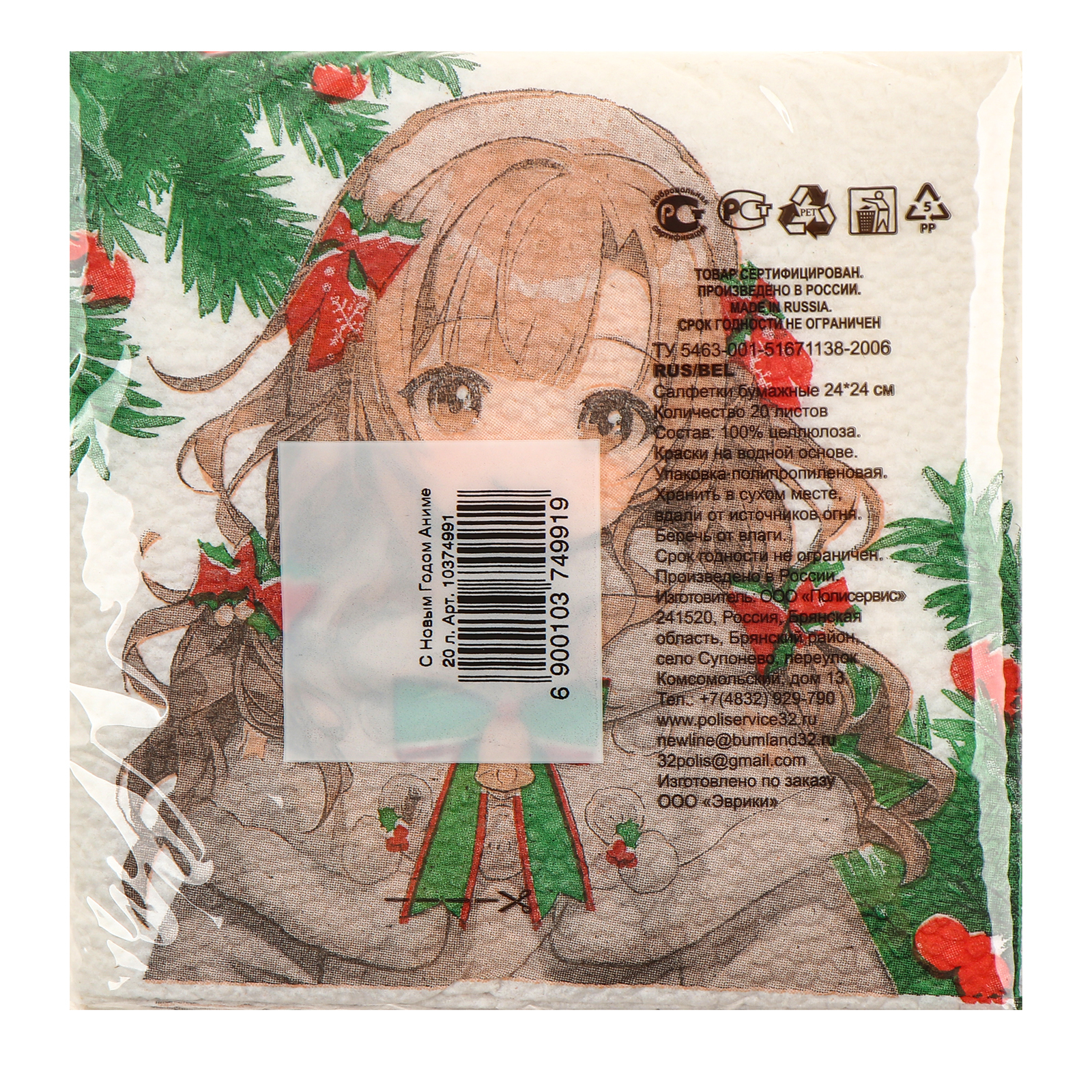 Салфетки бумажные «с новым годом», аниме, однослойные, 24х24 см, набор 20 шт