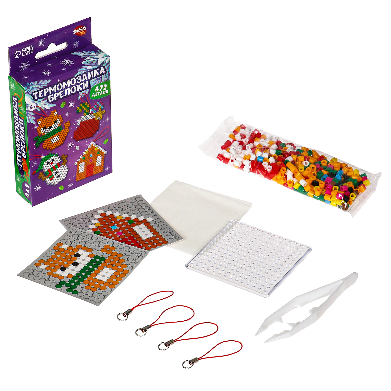 Термомозаика «с новым годом!». Термомозаика — необычный вид привычной аппликации. Под руководством взрослых малыш сможет создать уникальный аксессуар. Как изготовить поделку Разместите схему под прозрачной основой. С помощью пинцета выложите на основе детали соответствующих цветов.Накройте калькой и затем прогрейте утюгом.Готово!Вы также можете фантазировать и придумывать свои рисунки. Из фигурок можно сделать брелоки, надев кольцо из набора. Чем полезны занятия с термомозаикой Такое творчество способствуют развитию мелкой моторики рук, координации движений, тренирует усидчивость и аккуратность. Для кого:Унисекс|Возраст:От 3 лет|Количество элементов:472|Тематика:Новогодняя|Символ года:Нет|Тематика праздника:Новый год|Для создания:Ёлочная игрушка|Составляющие набора:Товары для творчества|Страна:Китай  развернуть описание ▼