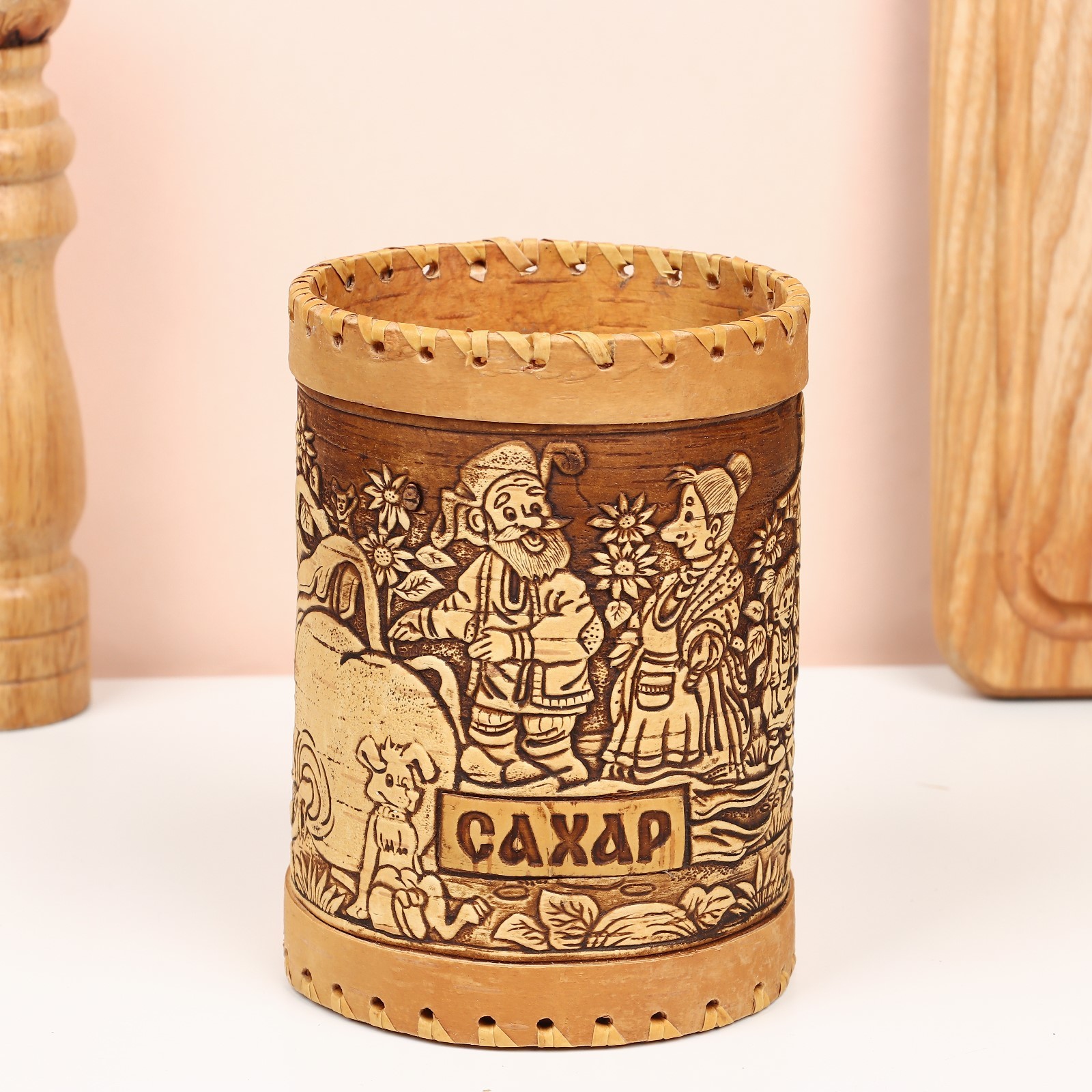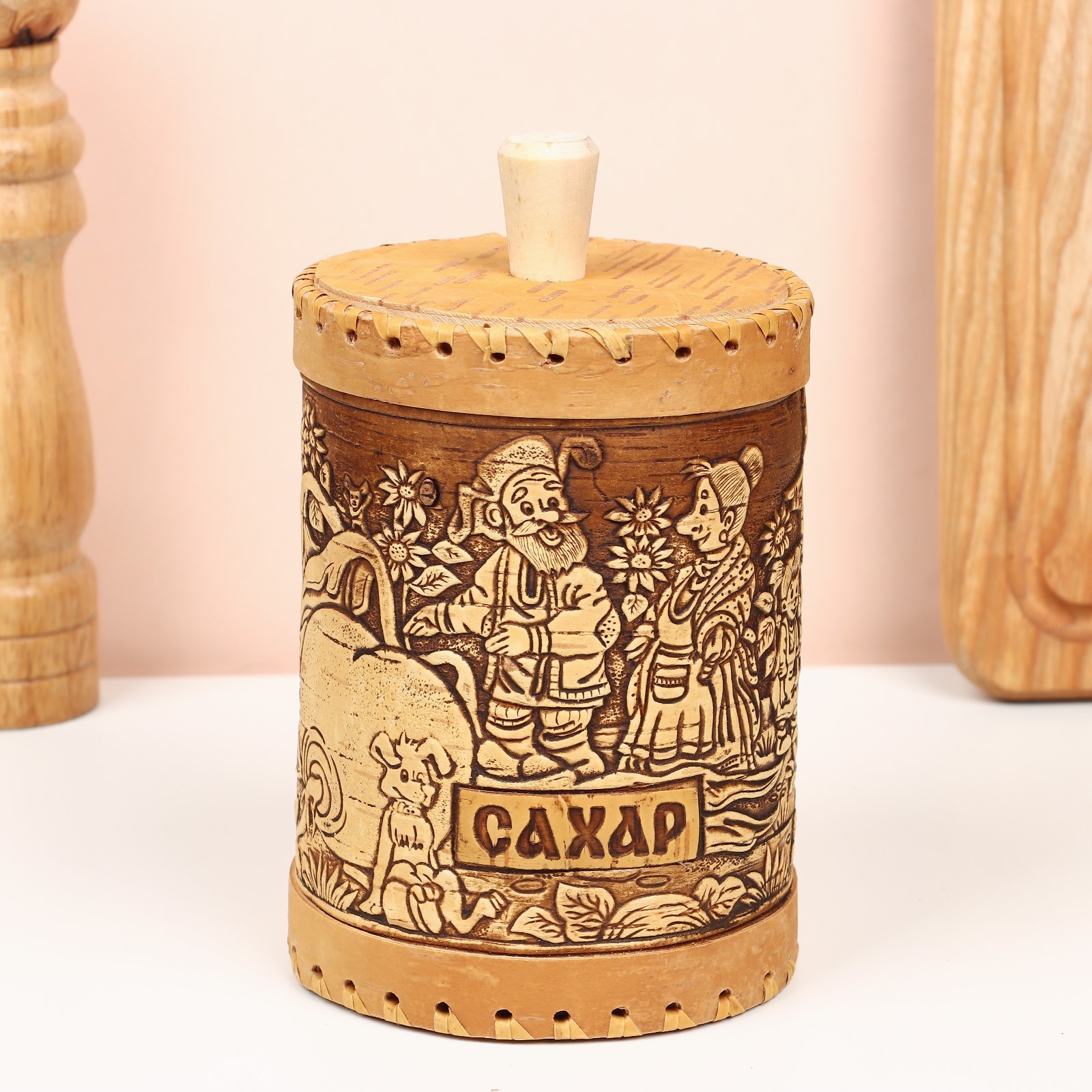 Туес «деревня", сахар, 10 х 10 х 14 см. Цвет: Коричневый Форма: Цилиндрическая Материал крышки: Дерево Вид дерева: Береста Материал: Береста Герметичная крышка: Нет Объём: 500 мл - 1 л Температурное ограничение: Нет Можно мыть в посудомоечной машине: Нет Текстура: С рельефом Назначение: Для сыпучих Особенности: Без особенностей Форма: Круг, шар, цилиндр  развернуть описание ▼