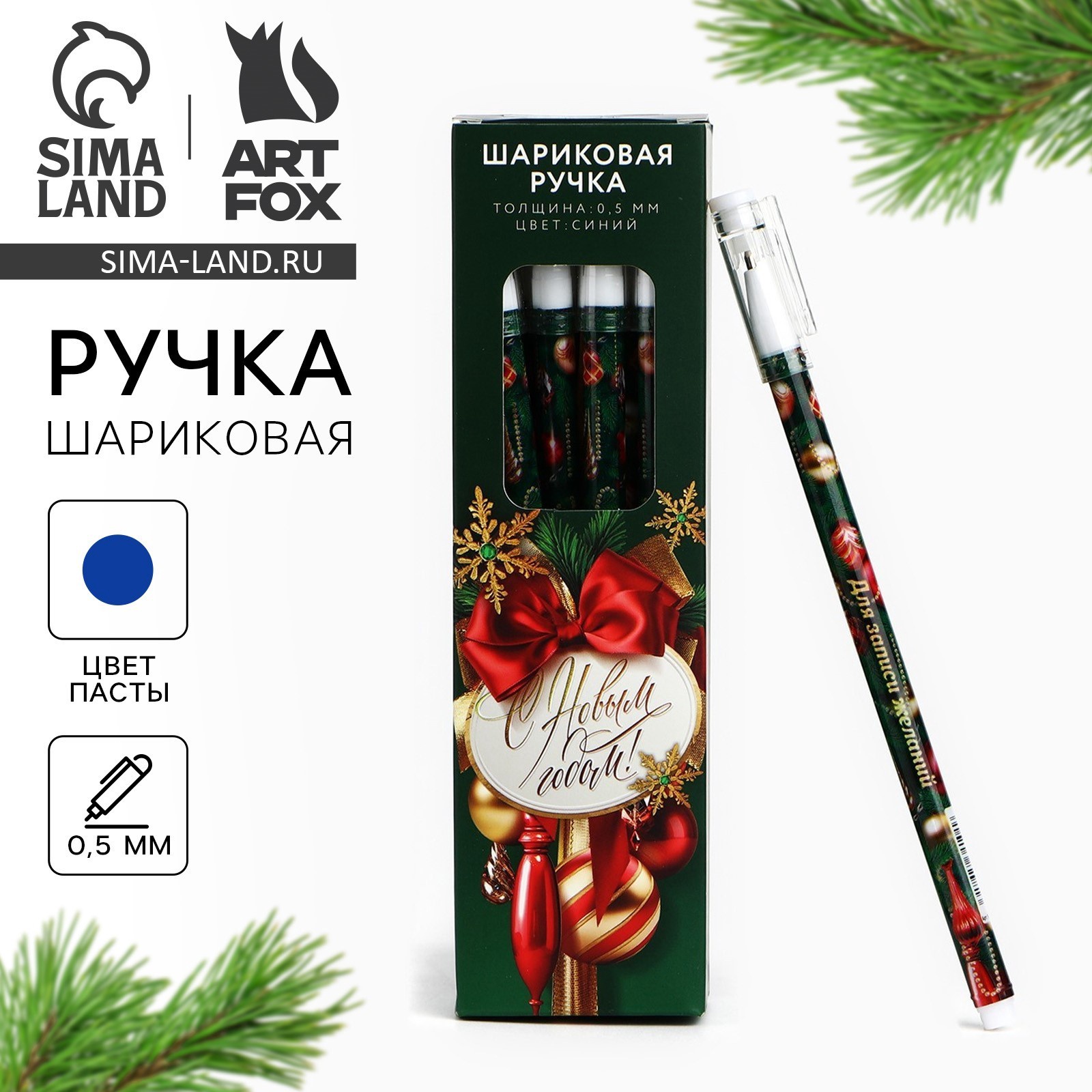 Ручка шариковая, синяя паста, 0.5 мм, пластик, с колпачком «для записи желаний». Ручка торговой марки ArtFox отлично подойдет в качестве подарка. Яркий дизайн несомненно привлечет внимание и будет выделяться среди других предметов, а удобная форма корпуса позволит использовать ее с комфортом. Цвет стержня: синий;Стержень заменяемый: да;Материал: пластик;Форма корпуса: круглая.Диаметр пишущего узла, мм:0.5|Набор:Нет|Цвет стержня:Синий|Европодвес:Нет|Вид упаковки:Коробка картонная|Символ года:Нет|Тематика праздника:Новый год|Адресат:Без адресата|Материал:Пластик|Материал упаковки:Картон|Составляющие набора:Ручка|Штрихкод на единице товара:Да|Наличие грипа:Нет|Страна:Китай  развернуть описание ▼