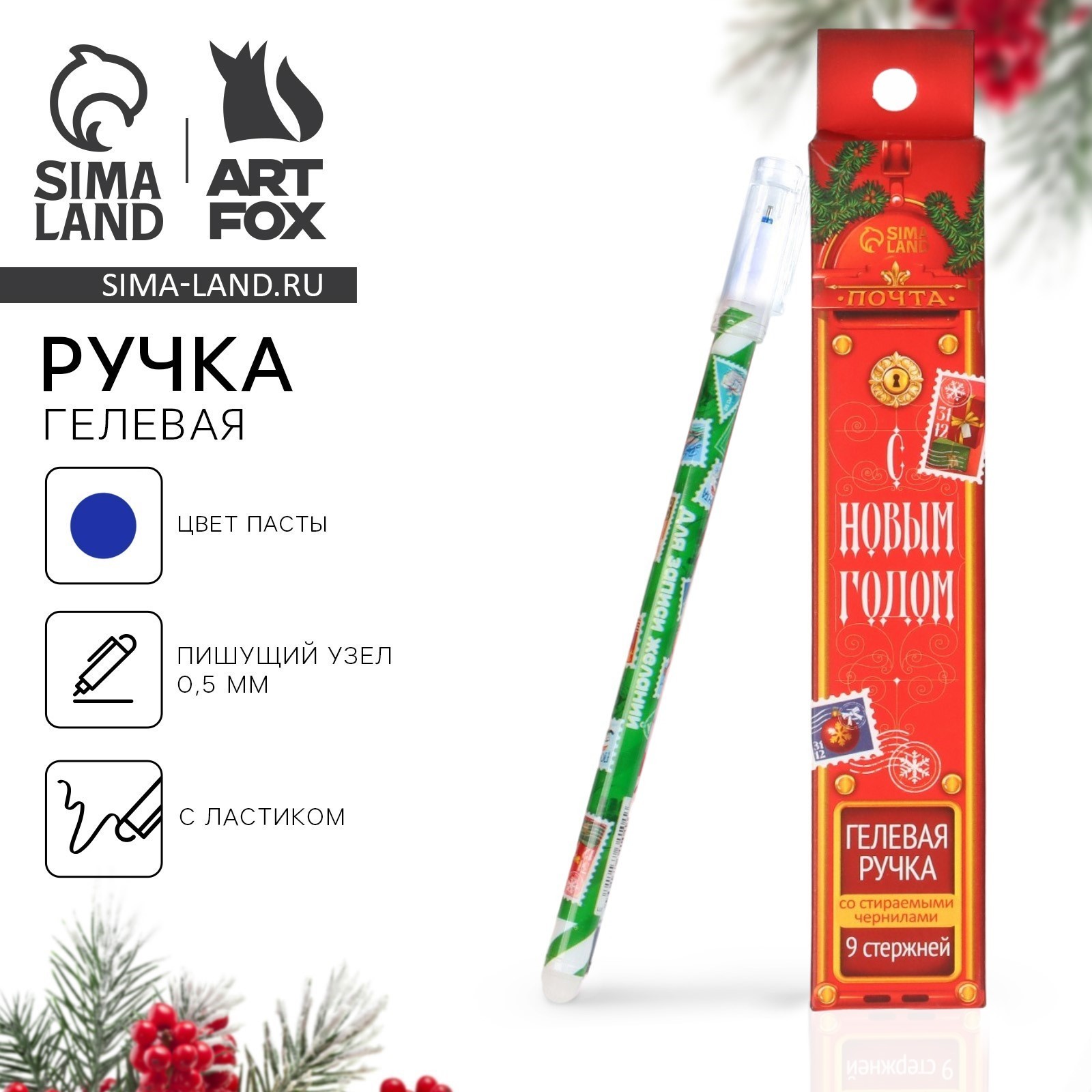 Ручка пиши-стирай, гелевая, синяя паста, 0.5 мм и стержни 9 шт. «для записи желаний». Ручка торговой марки ArtFox отлично подойдет в качестве подарка. Яркий дизайн несомненно привлечет внимание и будет выделяться среди других предметов, а удобная форма корпуса позволит использовать ее с комфортом. Цвет стержня: синий;Стержень заменяемый: да;Материал: пластик;Форма корпуса: круглая.Диаметр пишущего узла, мм:0.5|Набор:Да|Вид ручки:Гелевая|Цвет стержня:Синий|Европодвес:Да|Вид упаковки:Коробка картонная|Символ года:Нет|Тематика праздника:Новый год|Адресат:Без адресата|Материал:Пластик|Материал упаковки:Картон|Составляющие набора:Ручка|Стержень заменяемый:Да|Штрихкод на единице товара:Да|Наличие грипа:Нет|Страна:Китай  развернуть описание ▼