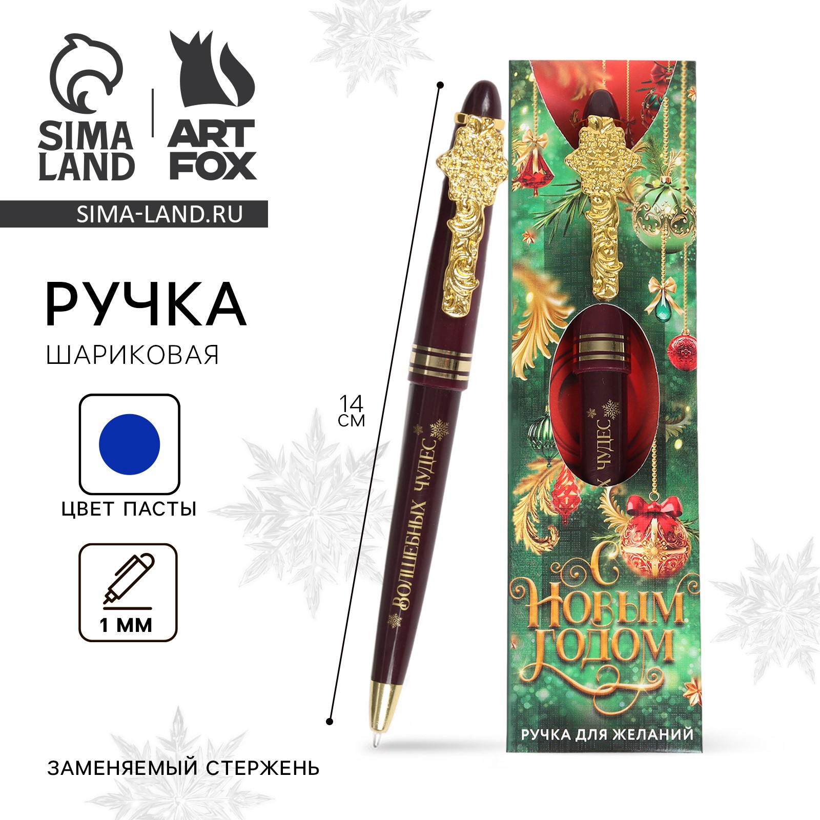 Ручка шариковая, синяя паста, 1.0 мм, автоматическая, пластик, в конверте «с новым годом»