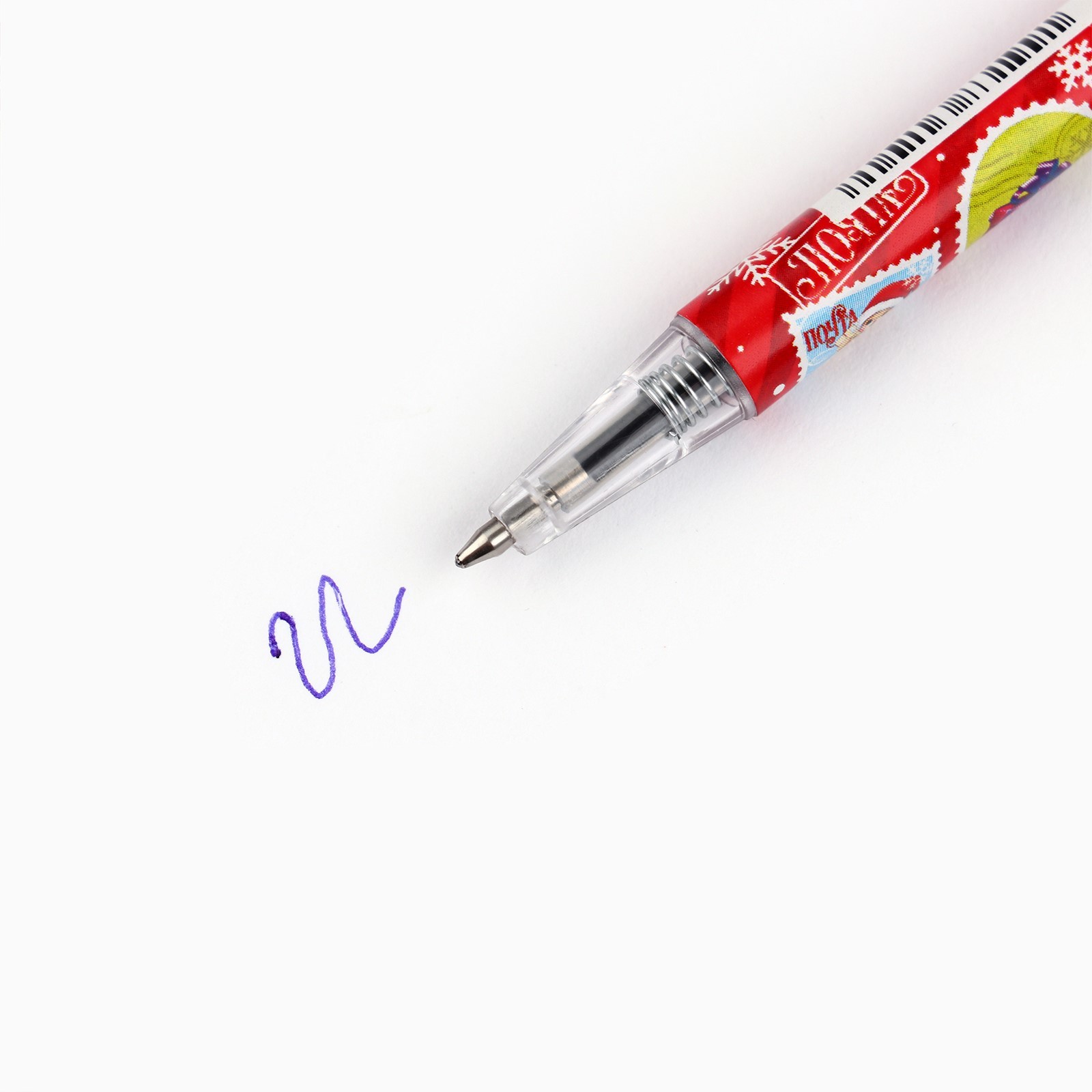 Ручка шариковая, синяя паста, 0.5 мм, автоматическая «новогодняя почта»
