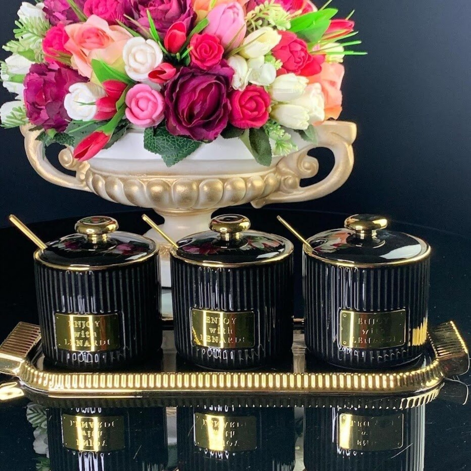 Набор банок Lenardi, с ложками на подставке, 3 шт, цвет чёрный