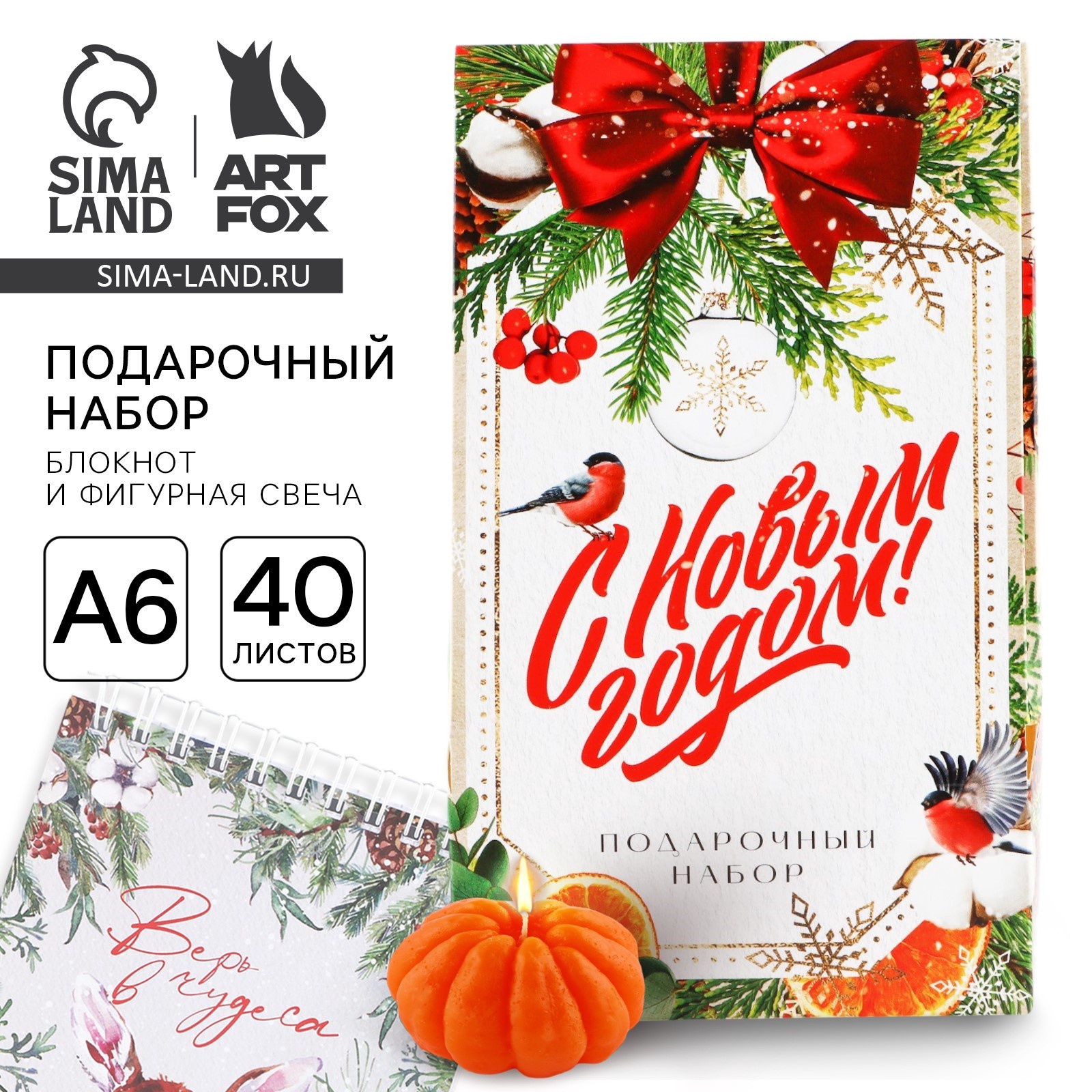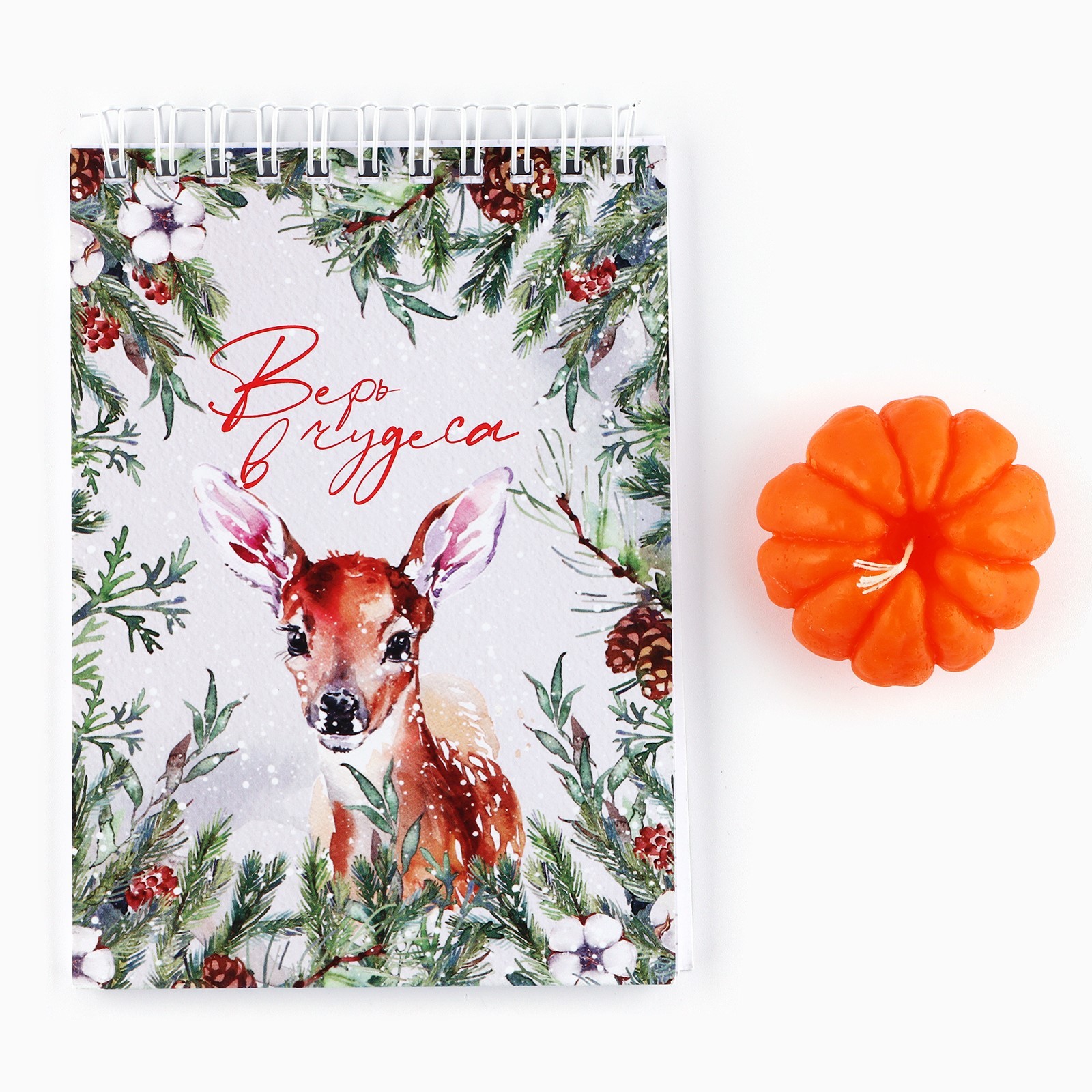 Подарочный набор новогодний, блокнот а6, 40 листов и фигурная свеча «с новым годом! верь в чудеса». Для кого:Для женщины|В наборе, шт.:2|Вид упаковки:Коробка картонная|Вид упаковки:Плёнка|Символ года:Нет|Тематика праздника:Новый год|Адресат:Без адресата|Материал:Картон|Материал:Бумага|Составляющие набора:Свеча|Составляющие набора:Блокнот|Возраст:Для взрослых|Страна:Россия  развернуть описание ▼