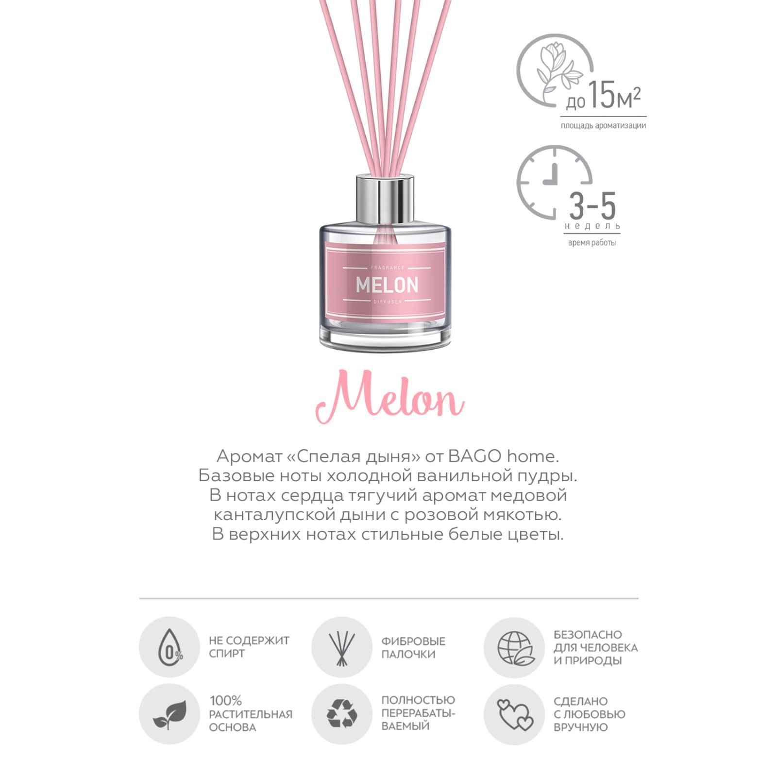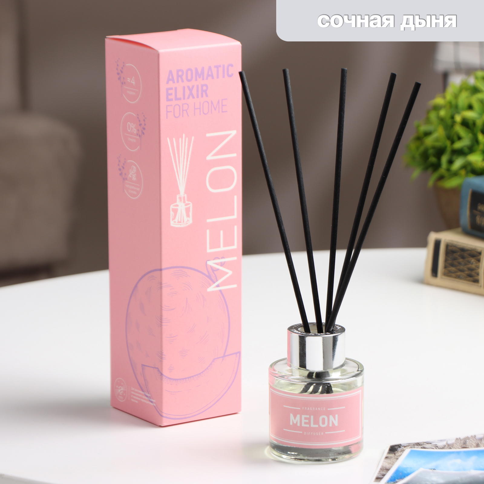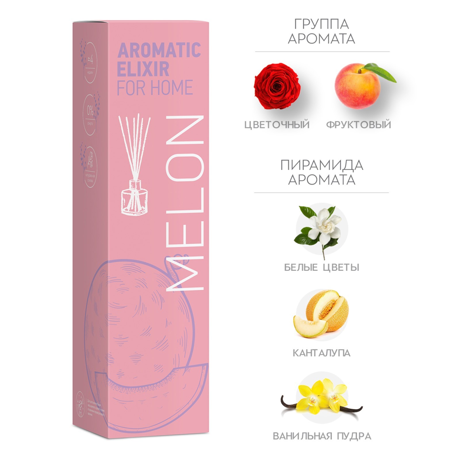Ароматический диффузор сочная дыня 40 мл. Объём, мл: 40 Вид ароматизатора: Диффузор Аромат: Дыня Температурное ограничение: Нет