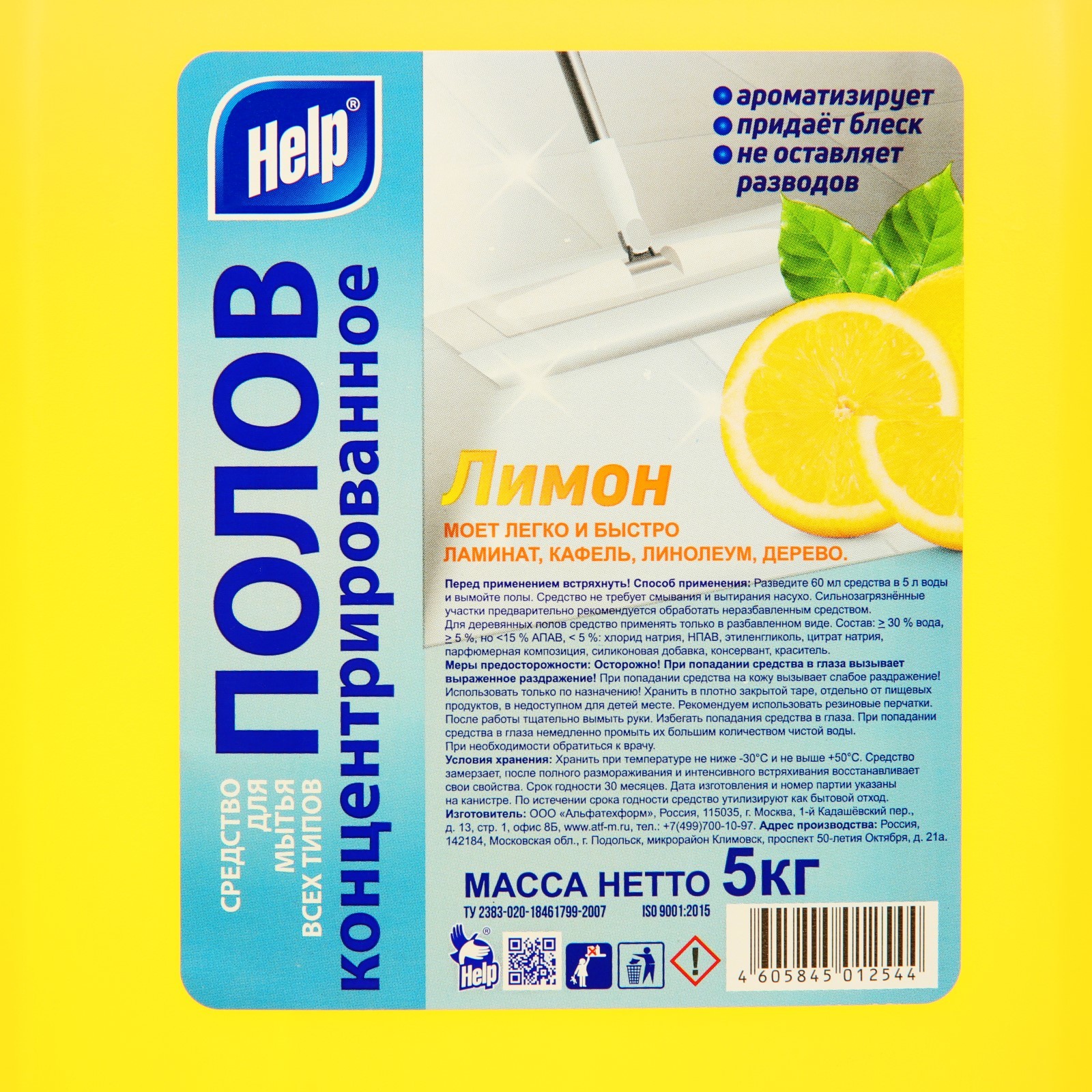 Средство для мытья полов Help "лимон" , концентрант, 5 кг