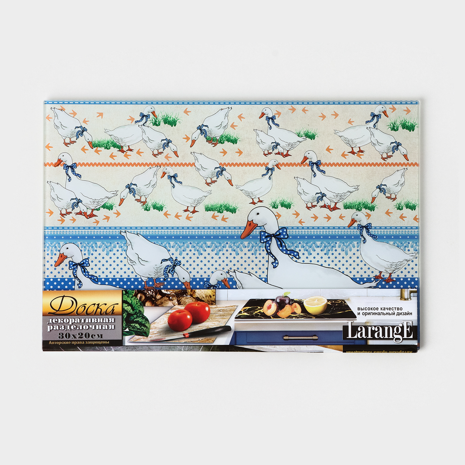 Доска разделочная стеклянная «гуси», 20x30см