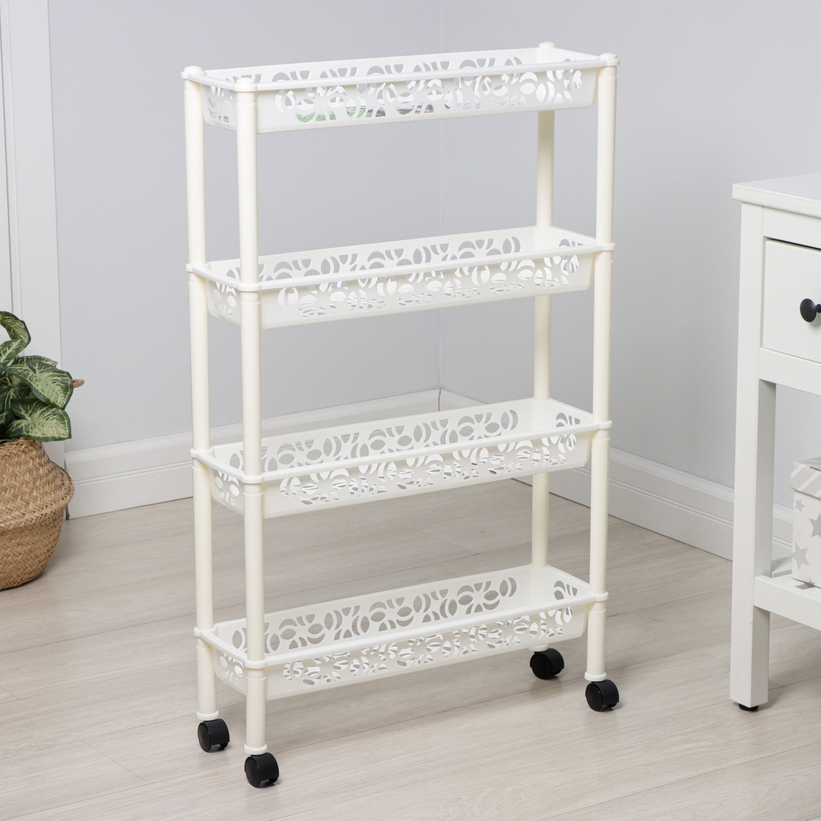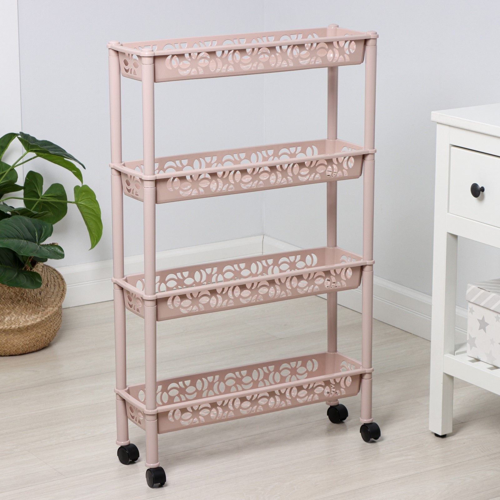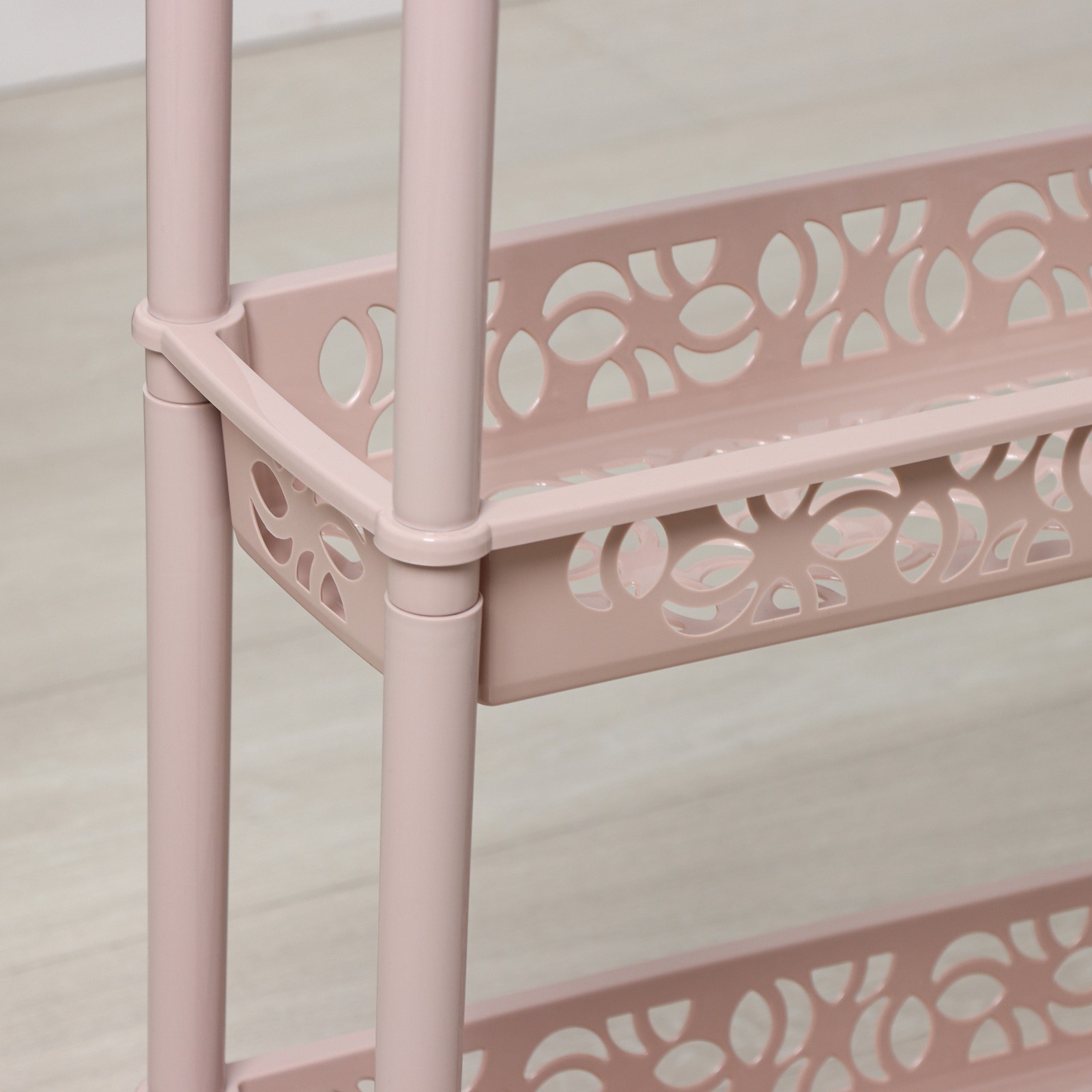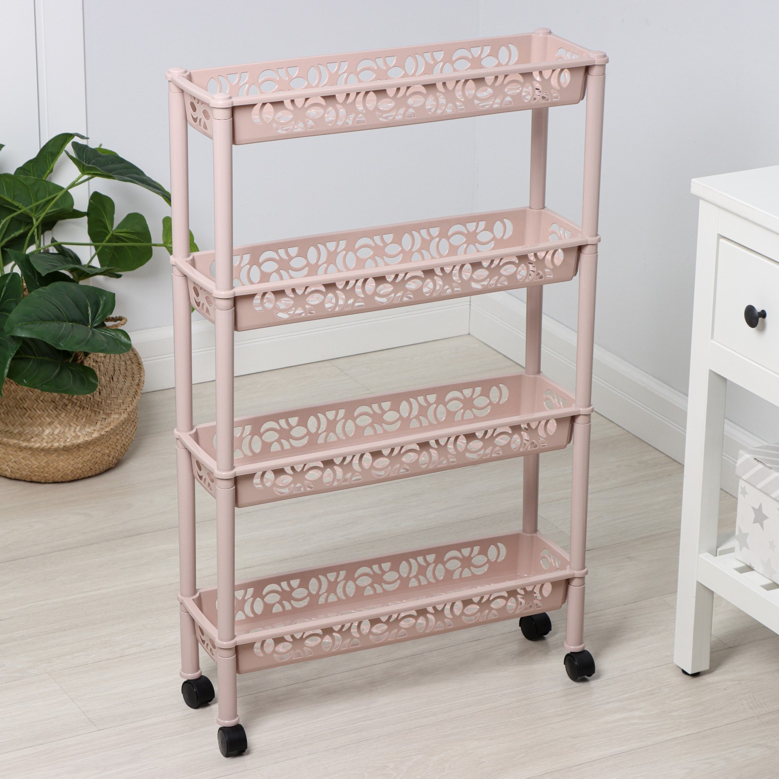 Этажерка напольная 4-х секционная branq prima, на колёсиках, цвет микс.   Прочный пластмассовый корпус стеллажа выдерживает высокую нагрузку. Также этажерка обладает повышенной устойчивостью за счёт углового расположения опор. Удобная, компактная, но в то же время вместительная, она прекрасно впишется в пространство любого помещения. Изделие можно расположить на кухне, в прихожей, ванной, гостиной, детской или спальне.  Этажерка найдёт своё применение: дома — для хранения обуви, одежды, хозтоваров, посуды, принадлежностей для душа или игрушек;в гараже — для рабочих приспособлений, таких как отвёртки, молотки, шурупы, гайки и прочие мелкие вещи;на даче — для садового инструмента или предметов в домике. Расстояние между полками - 24, 5 см.  Цвет: МИКС Ширина, мм: 580 Глубина, мм: 180 Высота, мм: 935 parts count: 0 Количество секций: 4 Максимальная нагрузка на полку, кг: 8 На колёсиках: Да Материал: Пластик  развернуть описание ▼