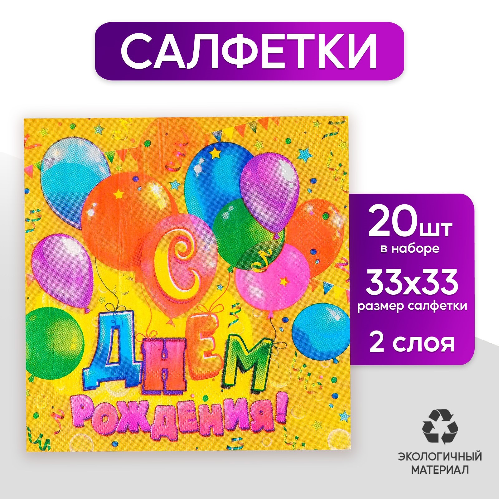 Салфетки бумажные двухслойные «с днём рождения», шарики, конфетти, 33х33, 20 шт.