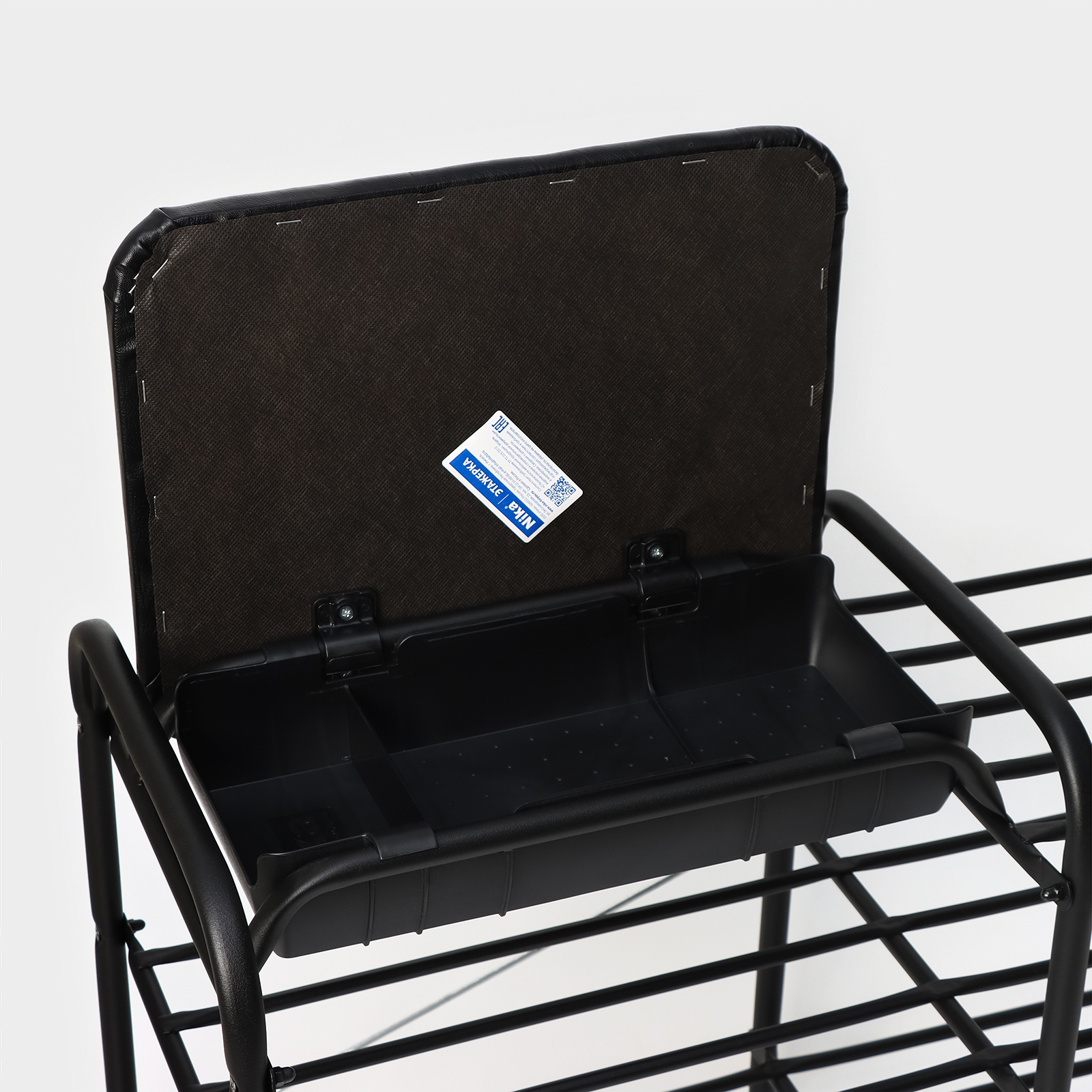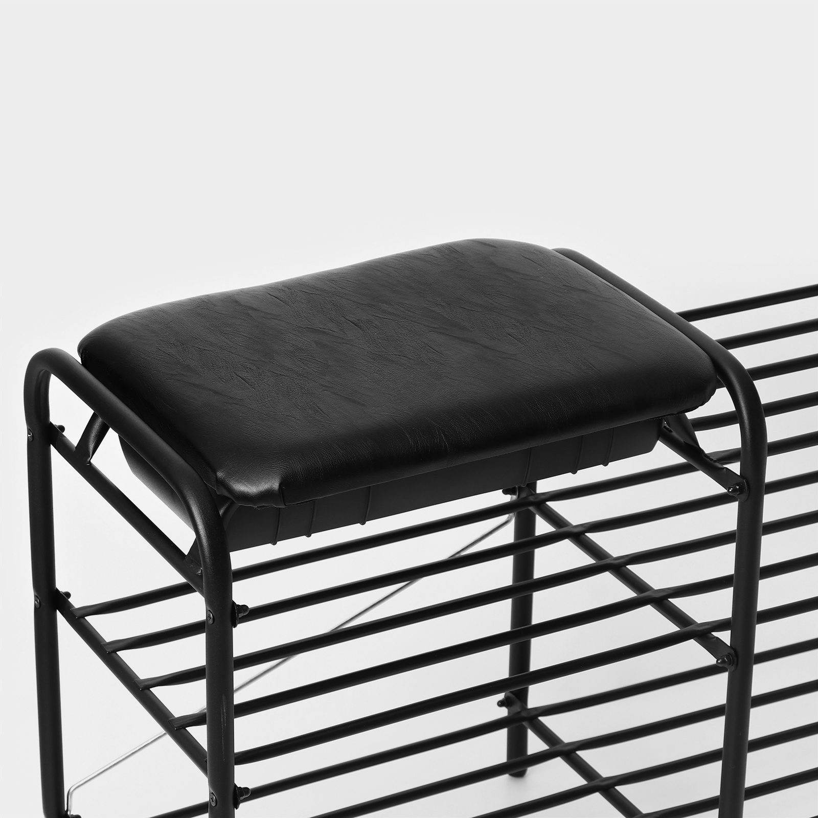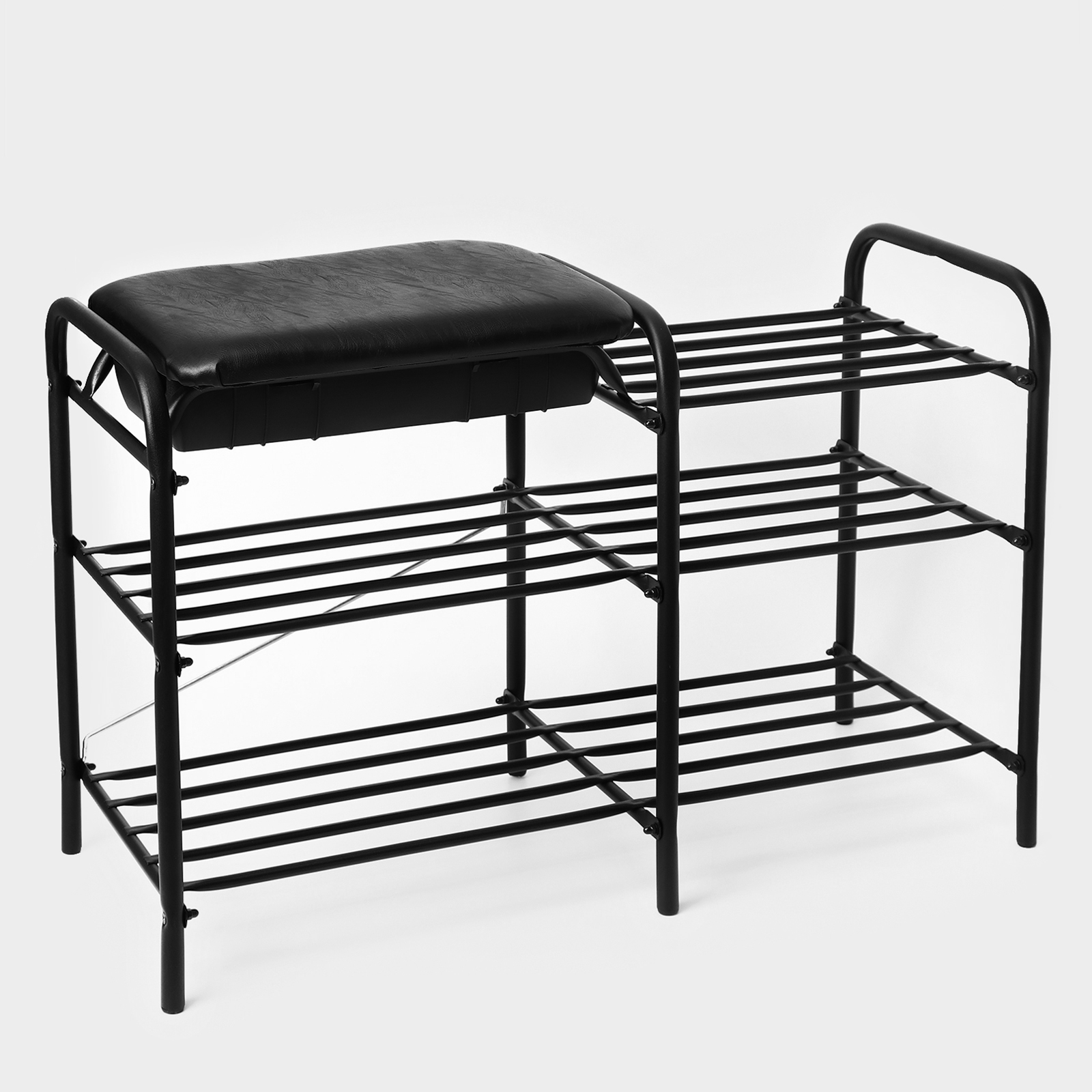 Этажерка для обуви с сиденьем и ящиком «люкс», 79x33x50 см, цвет чёрный. Цвет: Чёрный Ширина, мм: 790 Глубина, мм: 330 Высота, мм: 500 parts count: 0 Количество секций: 3 Количество полок: 3 Maксимальная нагрузка, кг: 100 Материал: Металл Ящик для хранения: Да Материал обивки: Винилискожа Температурное ограничение: Нет Поставляется в разобранном виде: Да  развернуть описание ▼