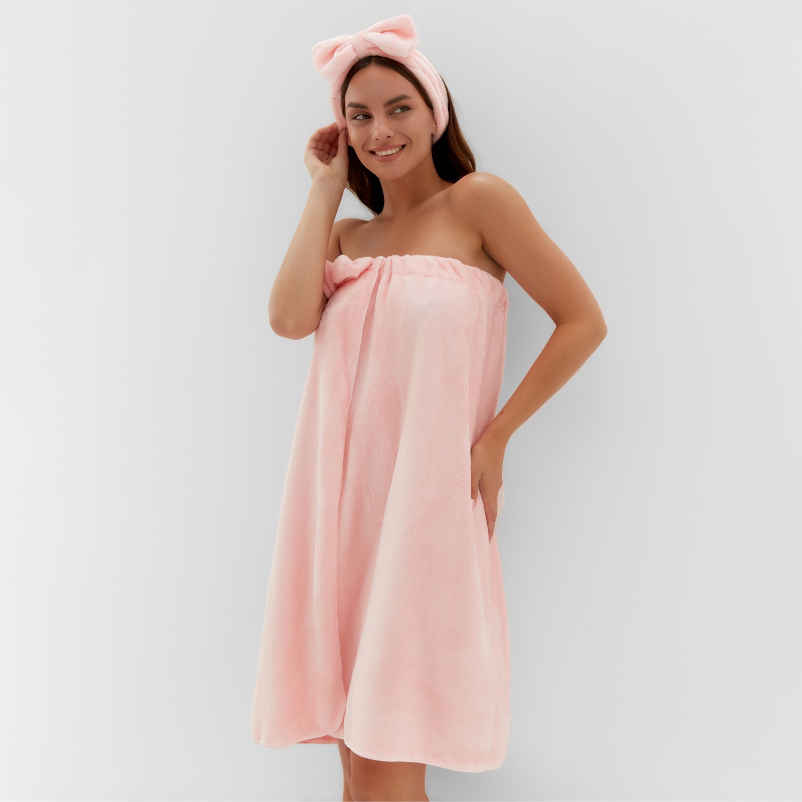 Набор для бани и ванной «этель. бантик», полотенце - парео 75 120 см, повязка на голову, розовый