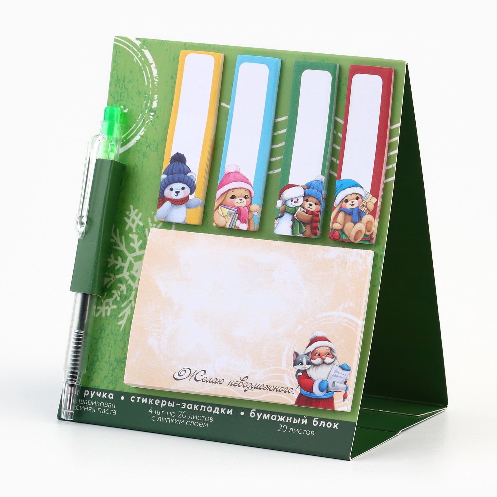 Подарочный набор новогодний «зима подарит чудеса», ручка, стикеры для заметок, 20 листов. Новогодний набор торговой марки ArtFox — прекрасный подарок для тех, кто любит читать и писать! Ручка Диаметр пишущего узла, мм: 0.5;Стержень заменяемый: да;Материал: пластик;Тип: автоматическая ручка;Вид ручки: шариковая;Цвет стержня: синий.Стикеры-закладки Размер, см: 1.5 х 5.5;Количество листов: 20.Бумажный блок Количество листов: 20.Набор:Да|Для кого:Унисекс|В наборе, шт.:6|Количество листов:20|Вид упаковки:Пакет|Символ года:Нет|Тематика праздника:Новый год|Адресат:Без адресата|Материал:Картон|Материал:Бумага|Материал:Пластик|Составляющие набора:Стикеры|Составляющие набора:Ручка|Составляющие набора:Блок бумаг|Возраст:Для детей|Страна:Китай  развернуть описание ▼