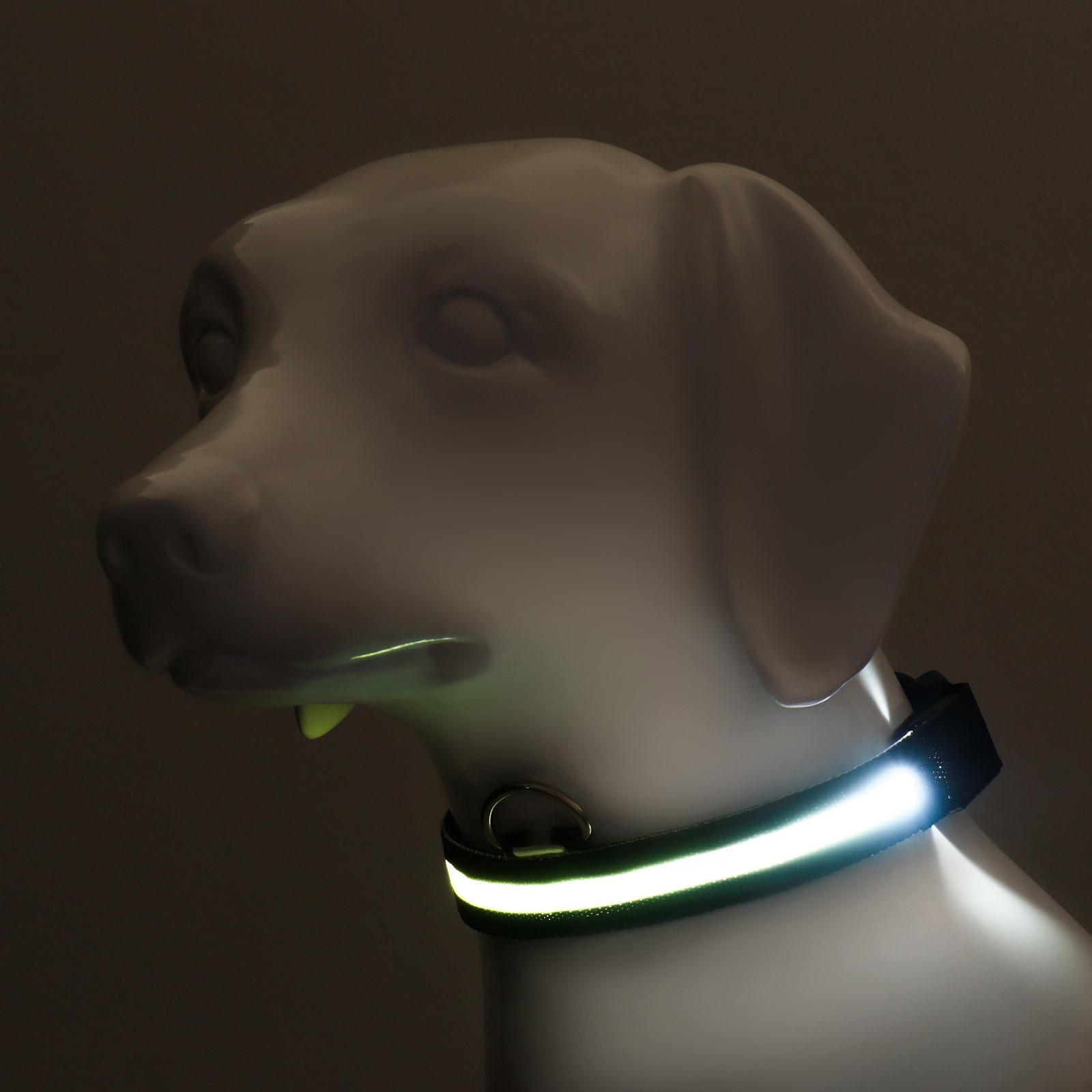 Ошейник с подсветкой размер Xl, ош 52-60 2.5 см, 3 режима свечения чёрный
