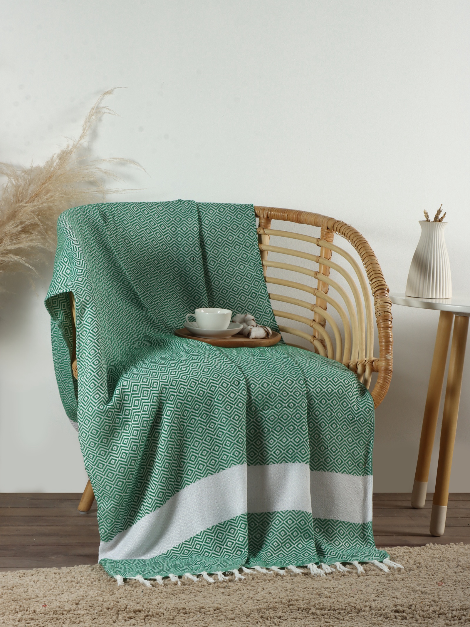 Плед с кисточками «этель» East, 100 180 см, зелёный