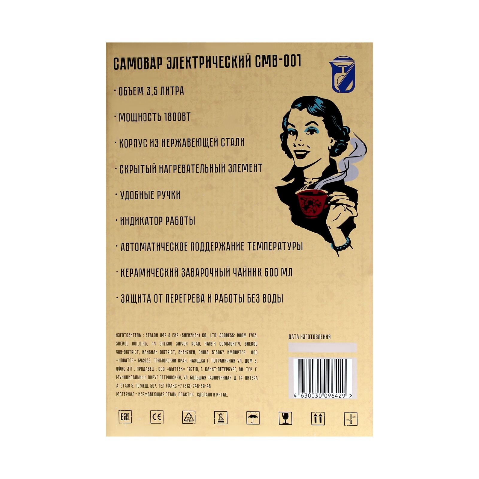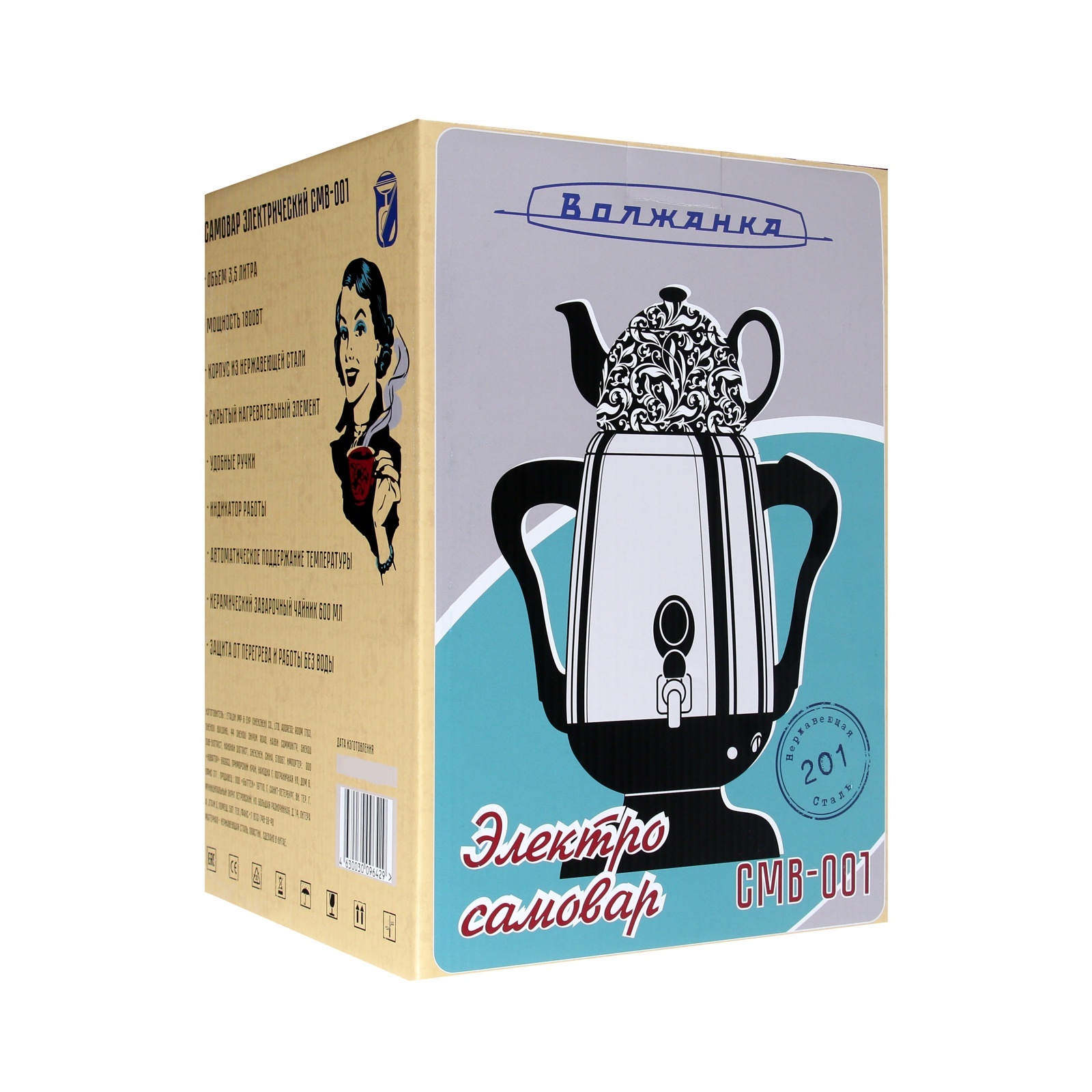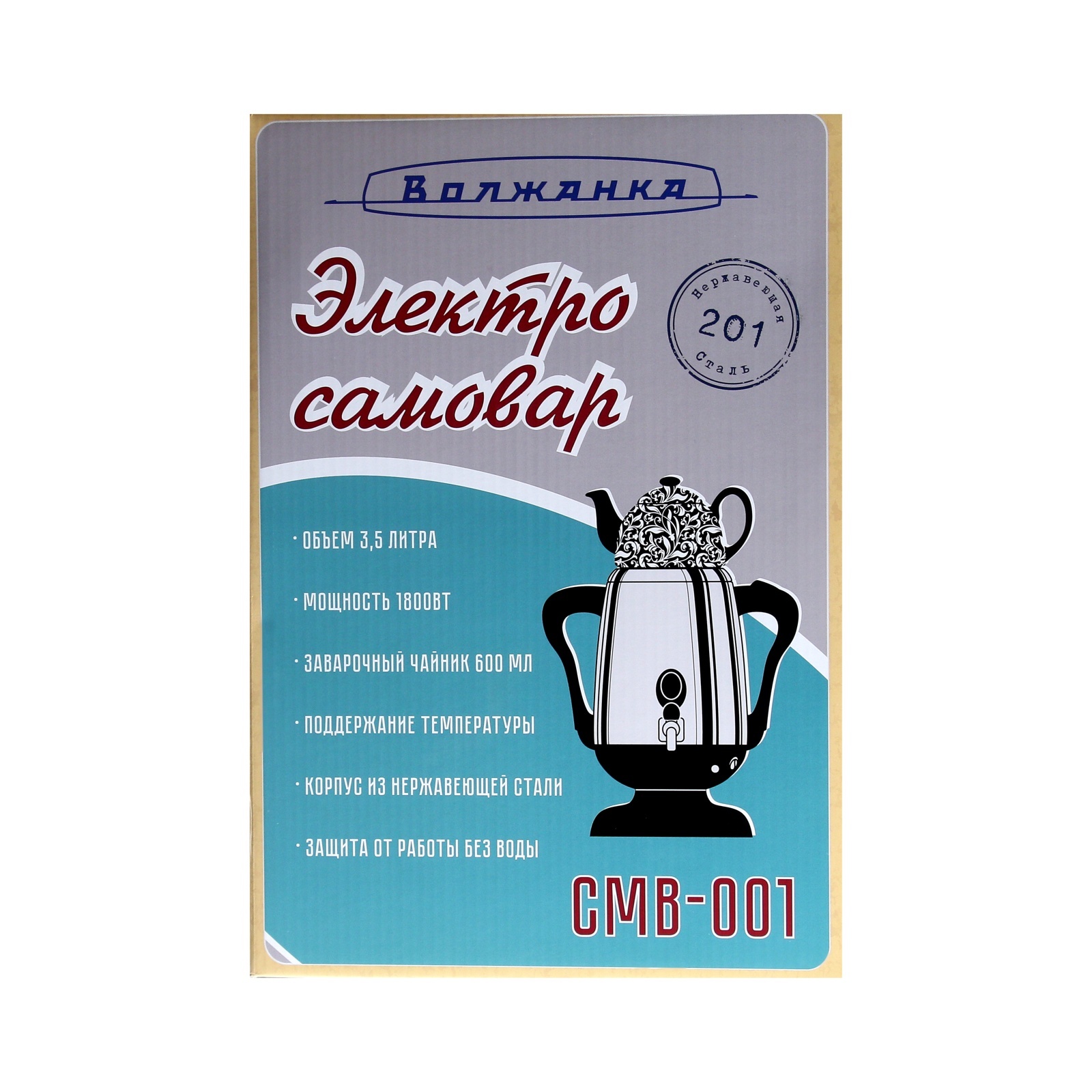 Самовар волжанка смв-001, металл, 3.5 л, 1800 вт, серебристый