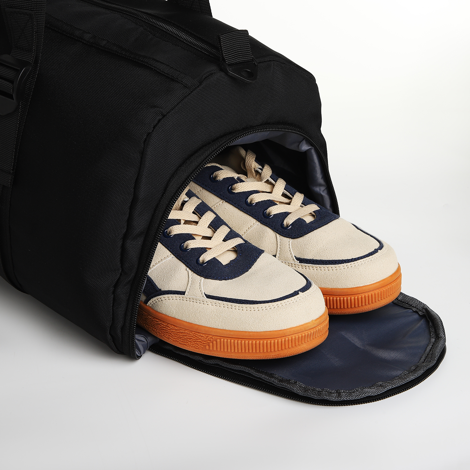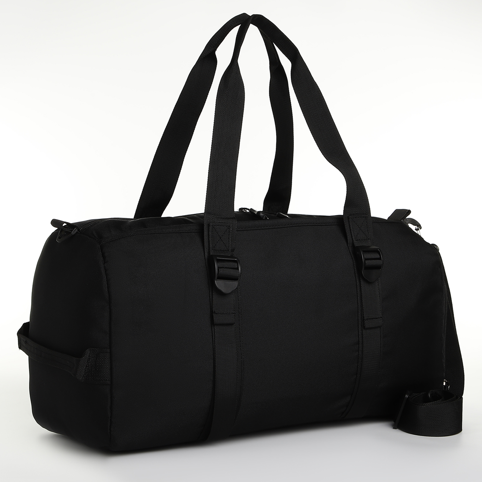 Сумка спортивная на молнии, отдел для обуви, 2 наружных кармана, длинный ремень, средний размер, цвет чёрный