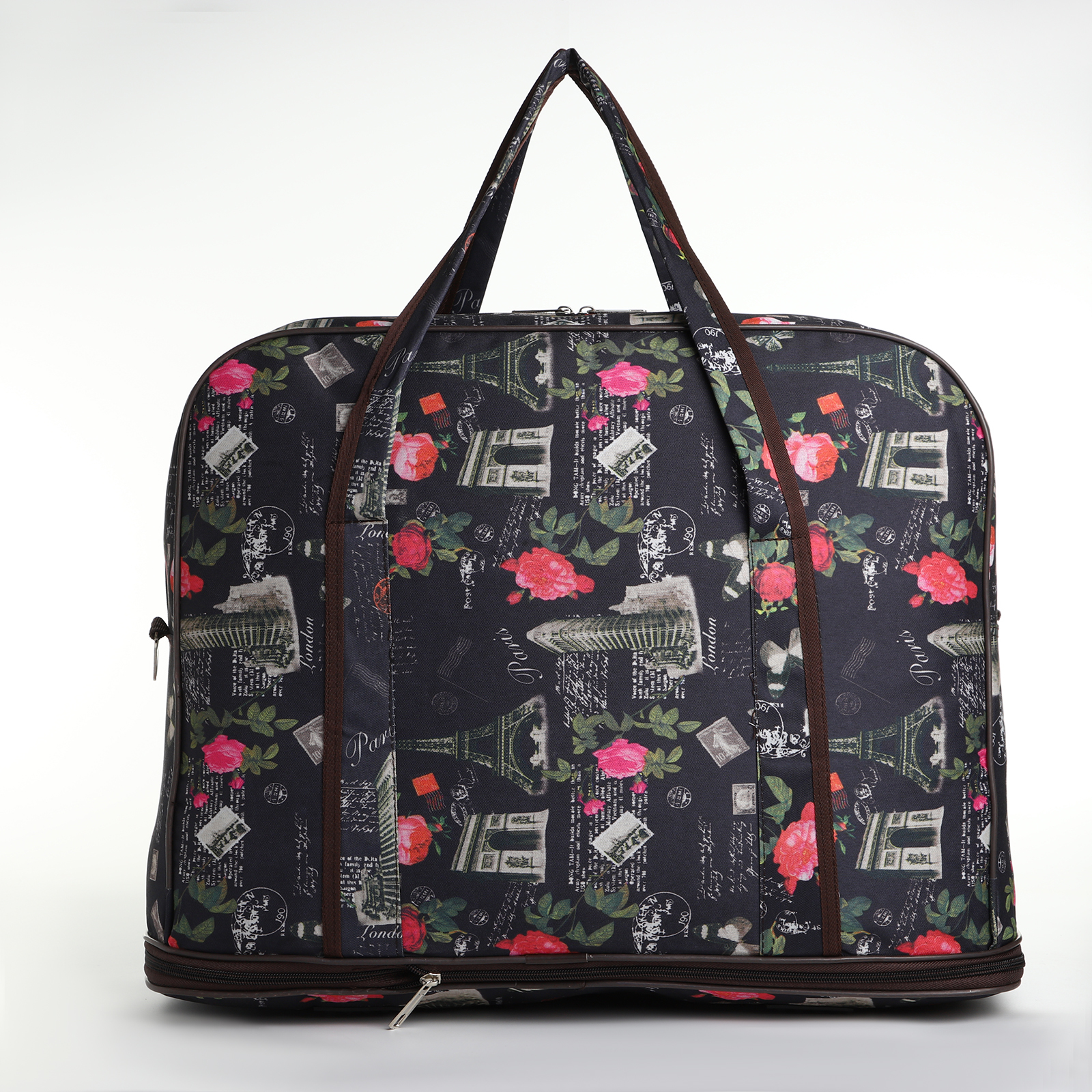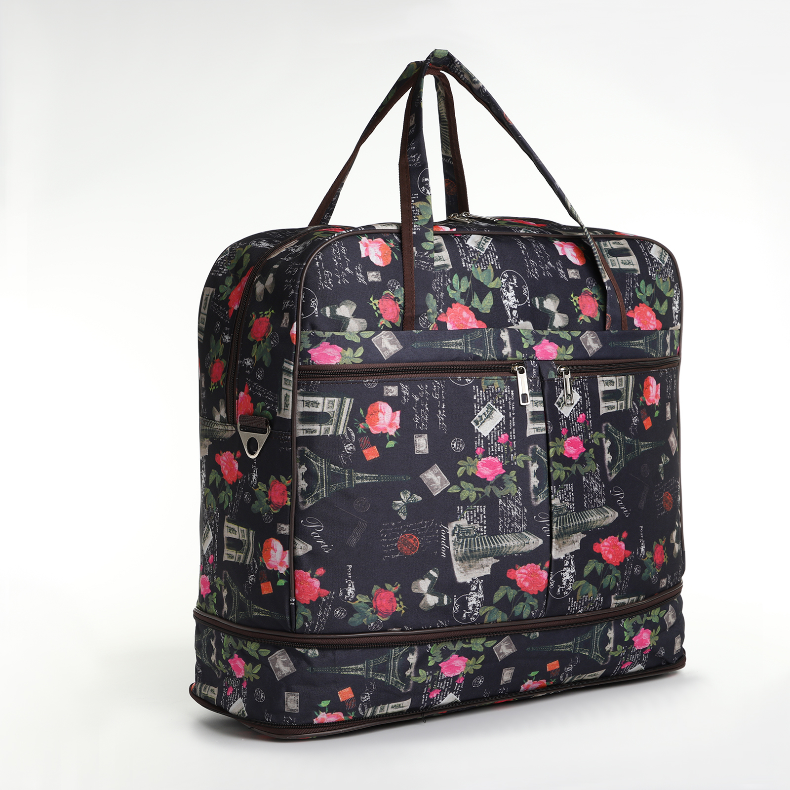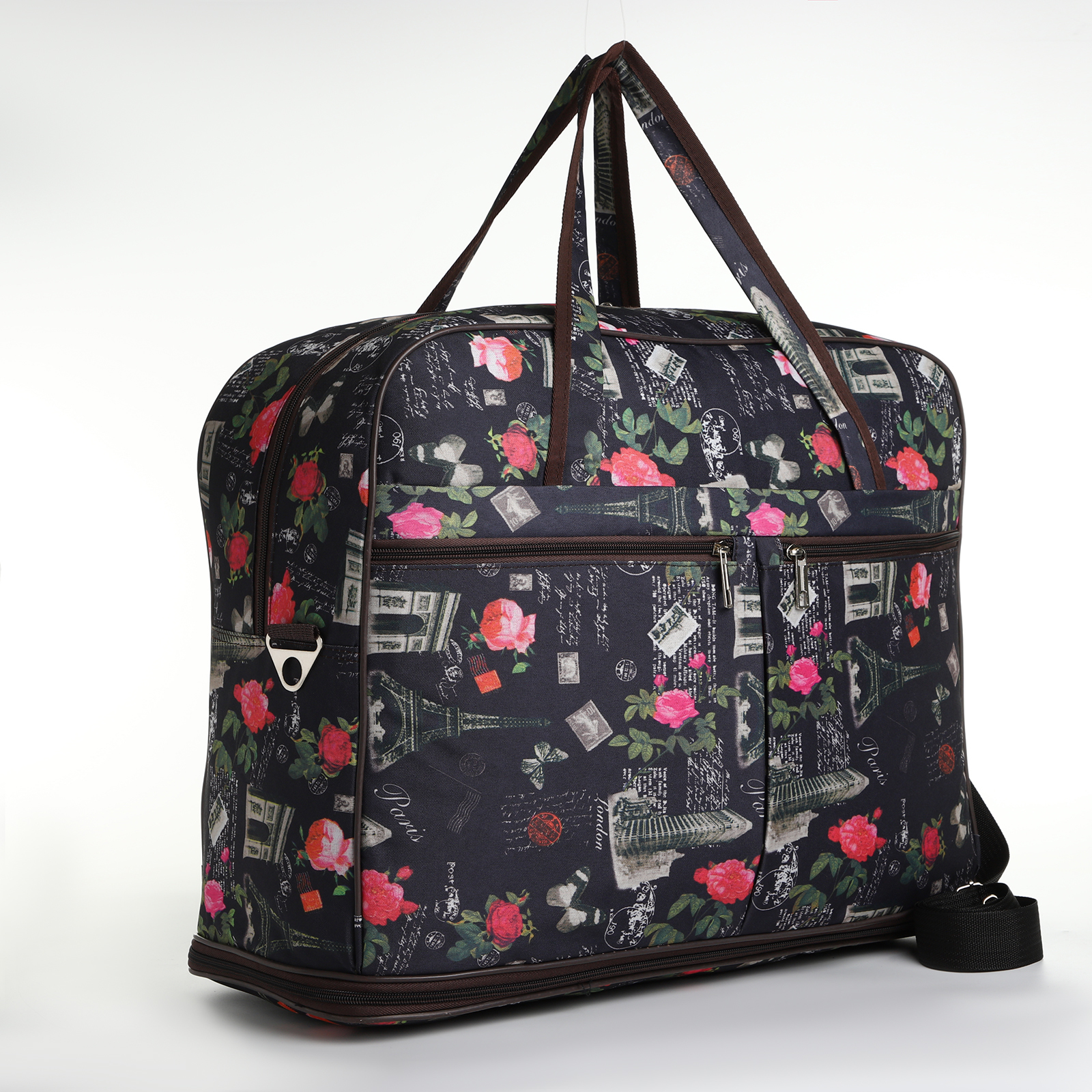 Сумка дорожная женская на молнии, с увеличением, 3 наружных кармана, длинный ремень, цвет чёрный