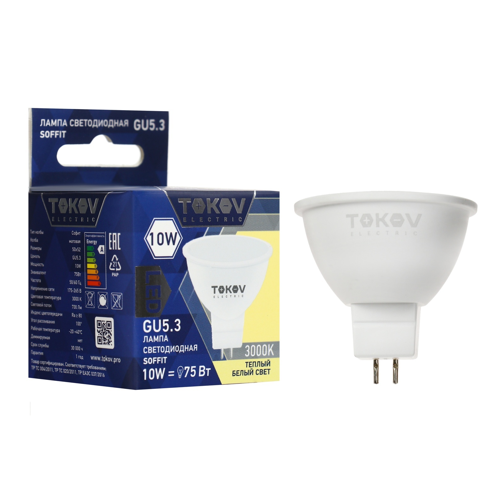 Лампа светодиодная Tokov Electric, 10 вт, Soffit, 3000 к, Gu5.3, 176-264в