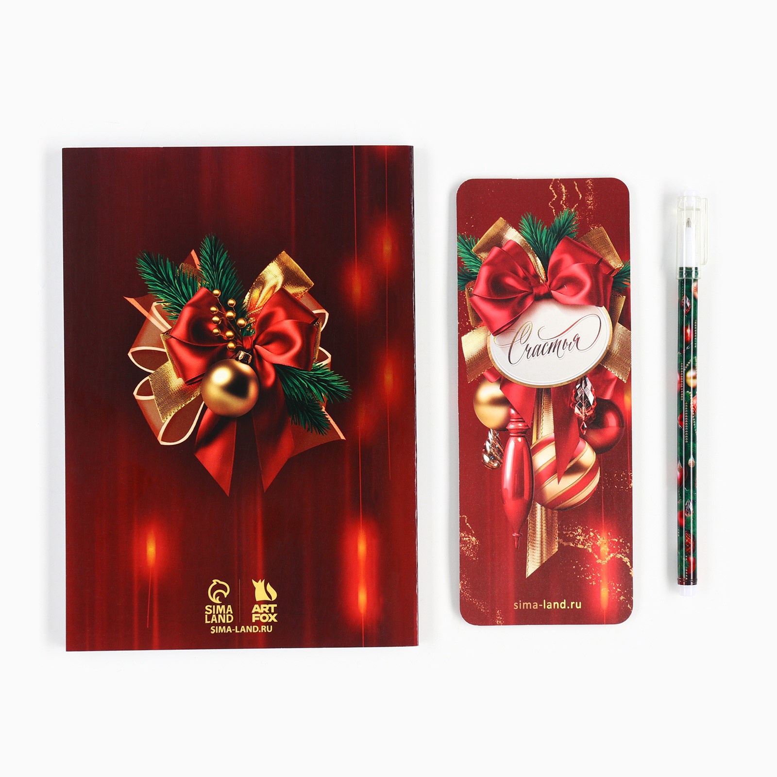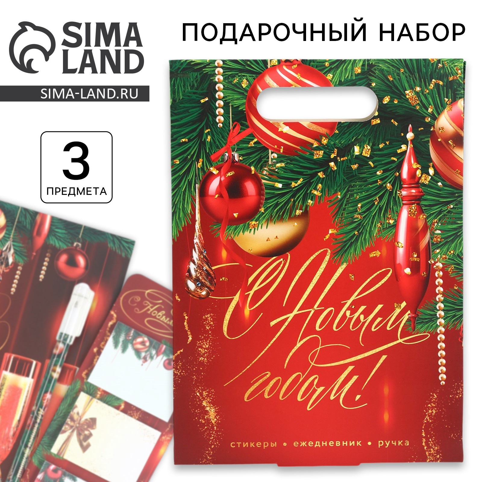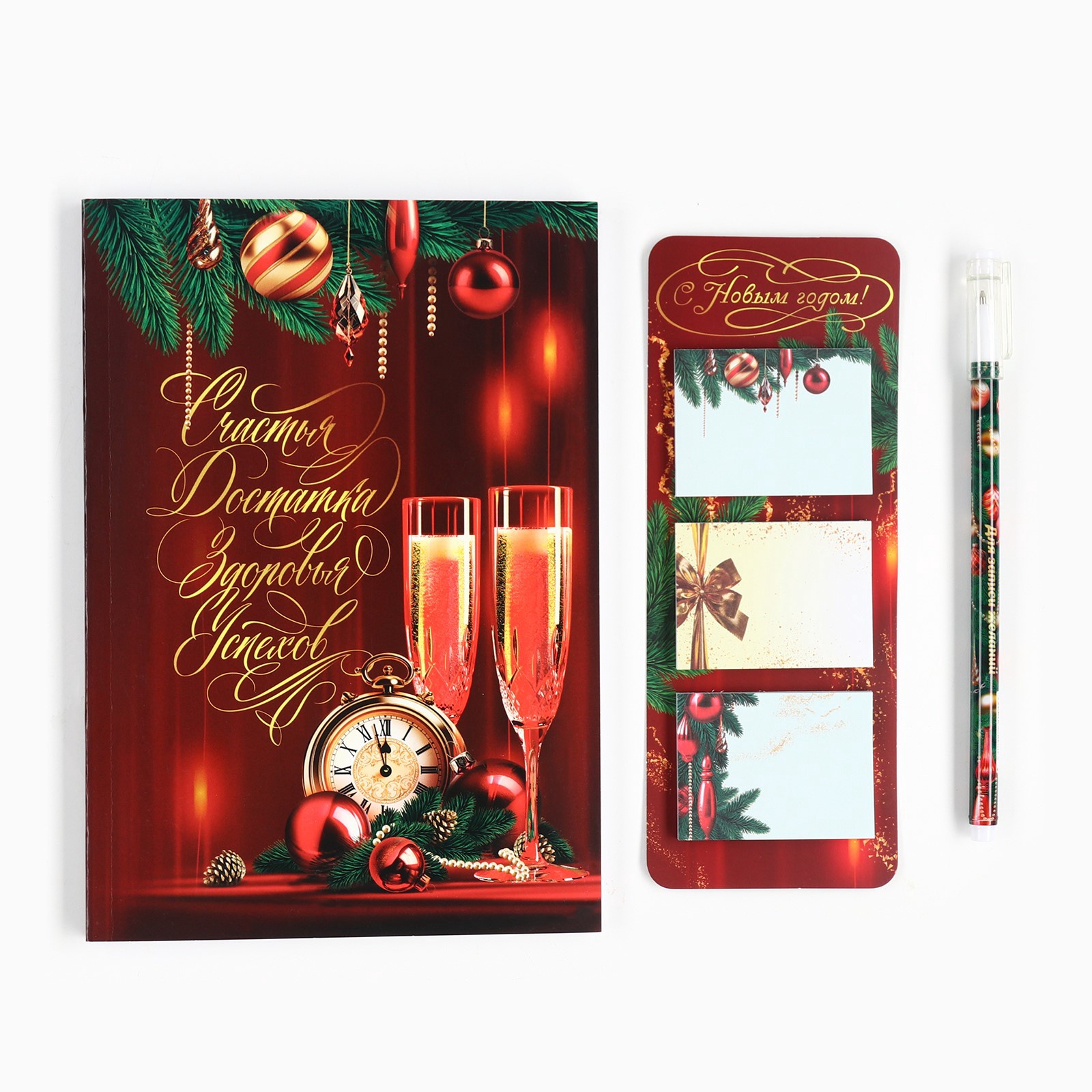 Подарочный набор новогодний, ежедневник, стикеры, ручка «с новым годом!». Для кого:Для женщины|Формат:А5|Линовка блока:Линейка|В наборе, шт.:3|Вид упаковки:Плёнка|Вид упаковки:Коробка картонная|Рисунок:Да|Символ года:Нет|Тематика праздника:Новый год|Адресат:Без адресата|Материал:Пластик|Материал:Картон|Материал:Бумага|Тип ежедневника:Недатированный|Составляющие набора:Ежедневник|Составляющие набора:Стикеры|Составляющие набора:Ручка|Возраст:Для взрослых|Дизайн обложки:С рисунком|Страна:Россия  развернуть описание ▼